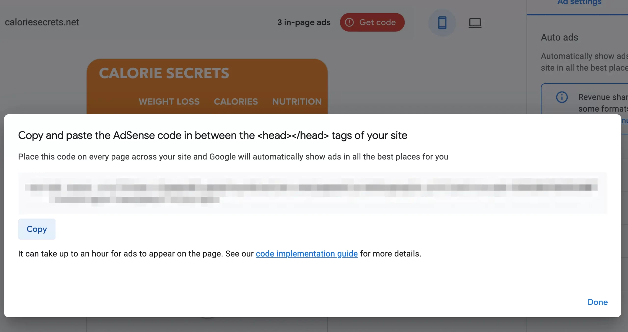 Before adding the code, it's a pre-requisite that you have a Google Adsense account.