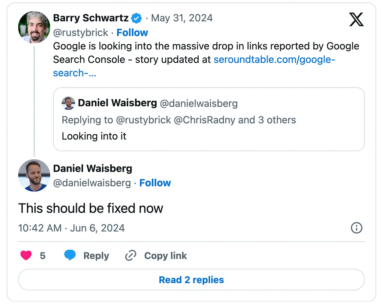 The Google Search Console links report may be experiencing bugs, and the data may be messed up. As mentioned above, if you notice large drops in the number of reported links, check if there is a confirmed bug. X and the @googlesearchc (Google Search Central) account are the best places to do this.