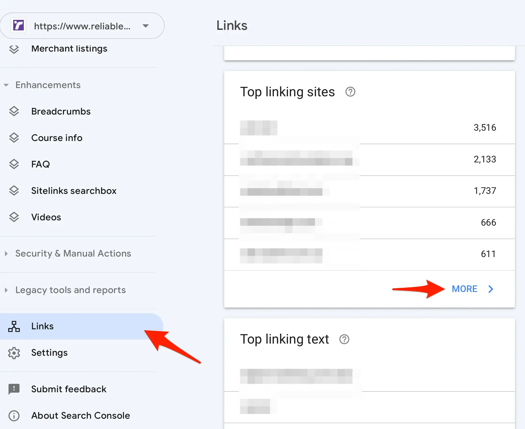 Click the MORE button under "Top Linking Sites".