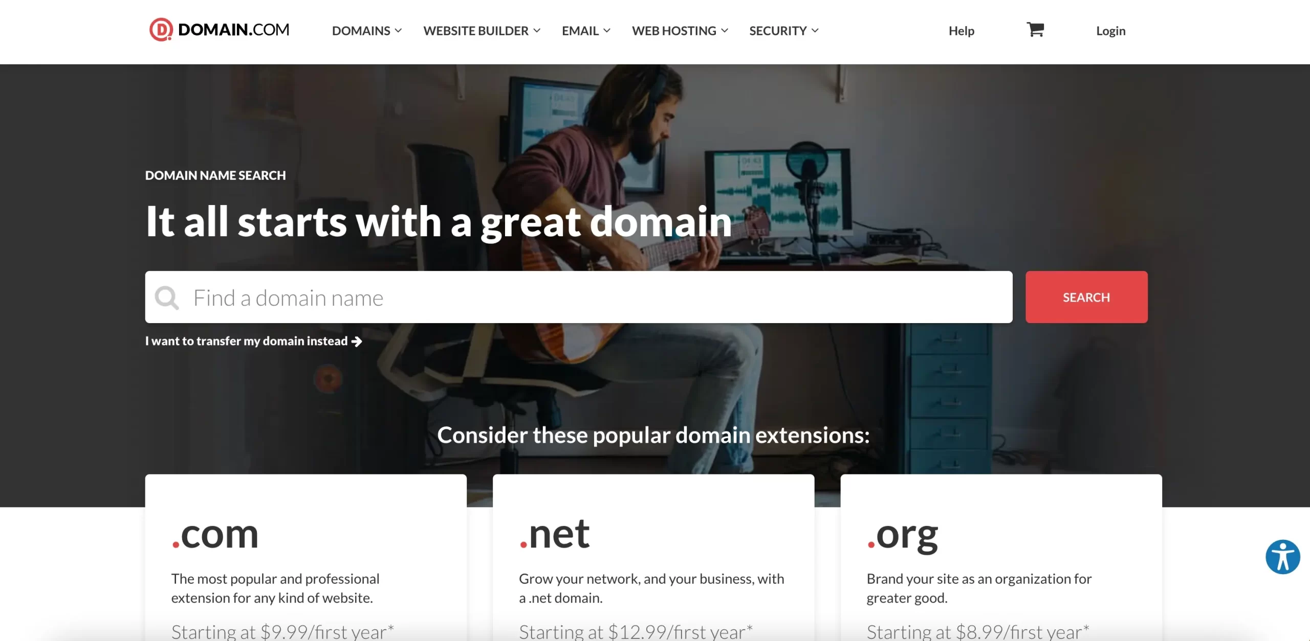 Domain.com is a good choice if you want to be able to choose from a wide range of TLD and country-code domains. There’s also fantastic customer service for beginners.