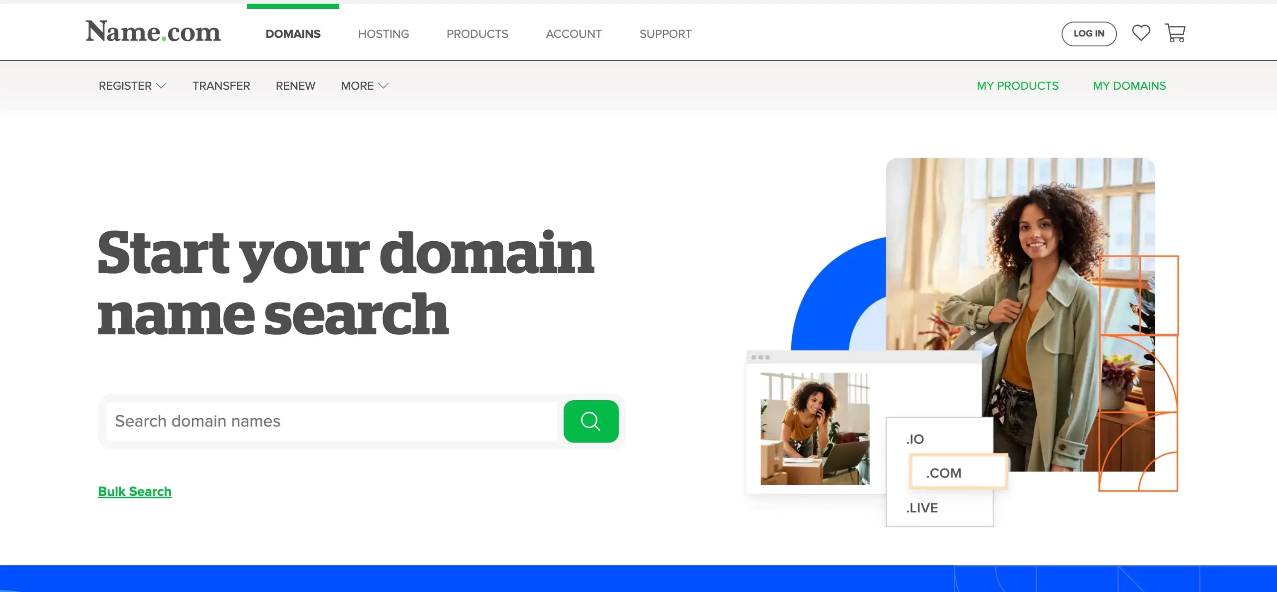 One of the top domain registrars worldwide, Domain.com supports a range of TLDs and dozens of country-code domains like co.uk too. The company offers excellent customer support and a simple process for finding and registering as many domain names as you like.