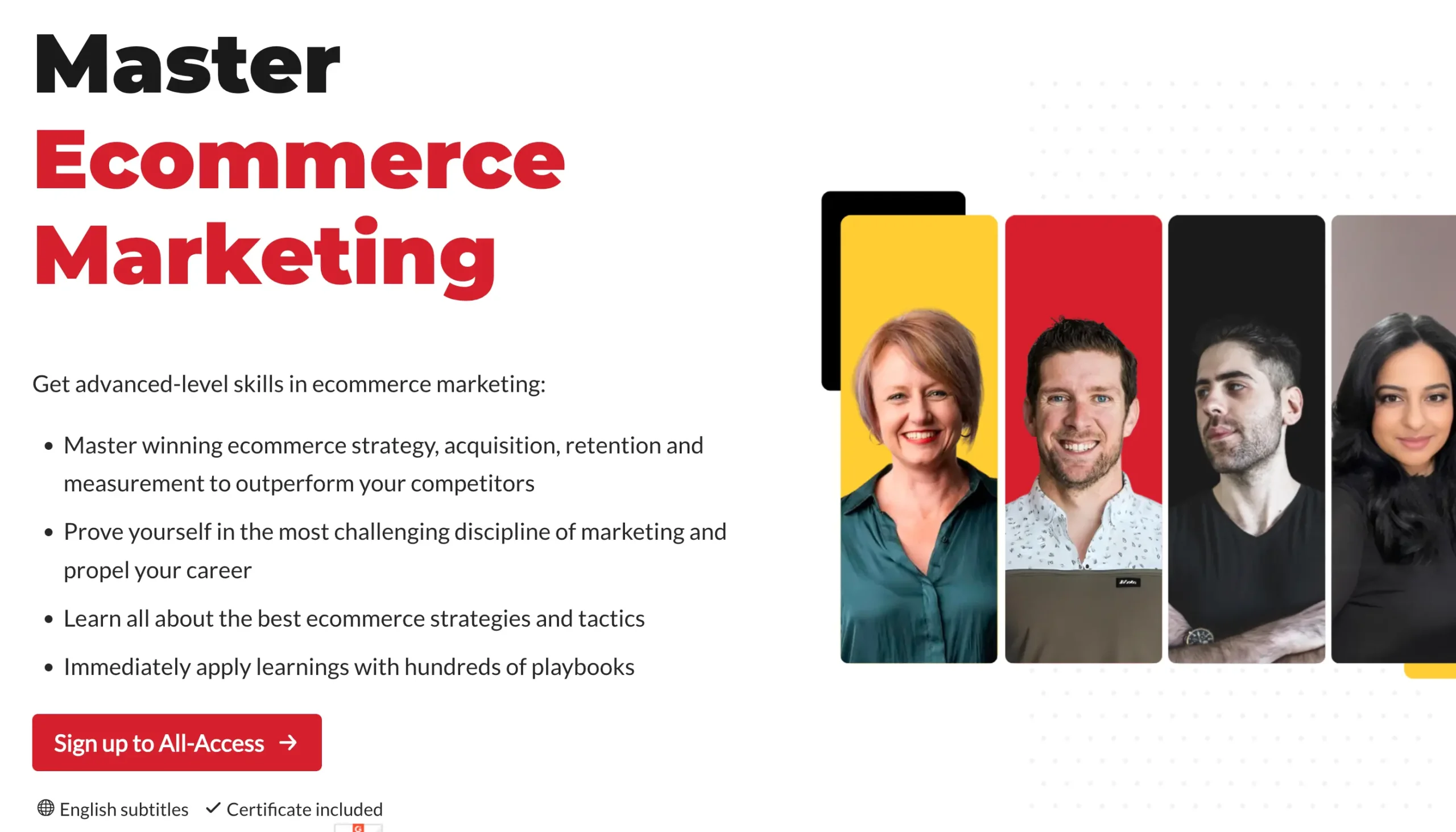 It's a comprehensive course bundle covering all eCommerce marketing concepts. The instructors are industry experts, and the lessons are based on actionable techniques and practices.