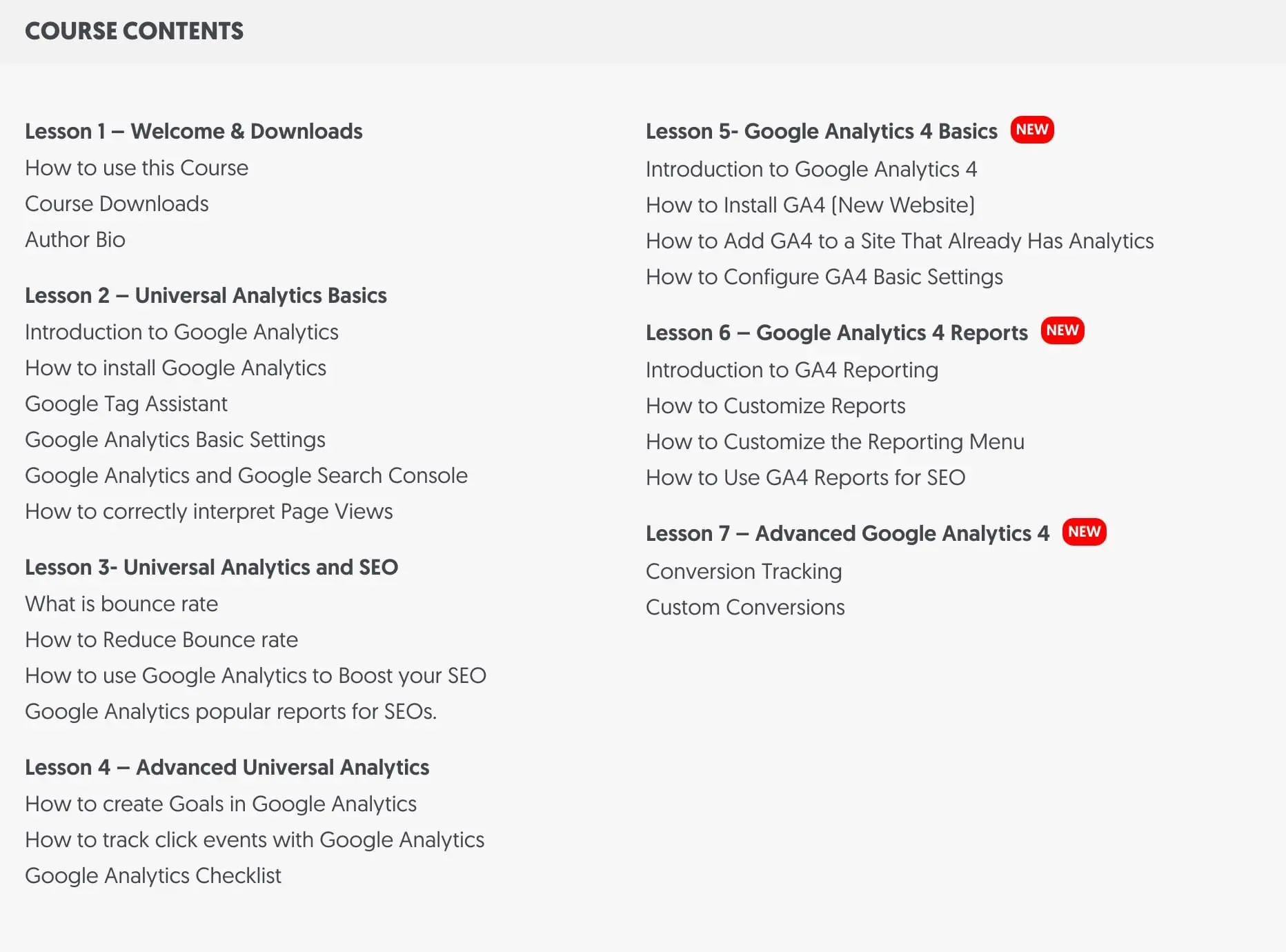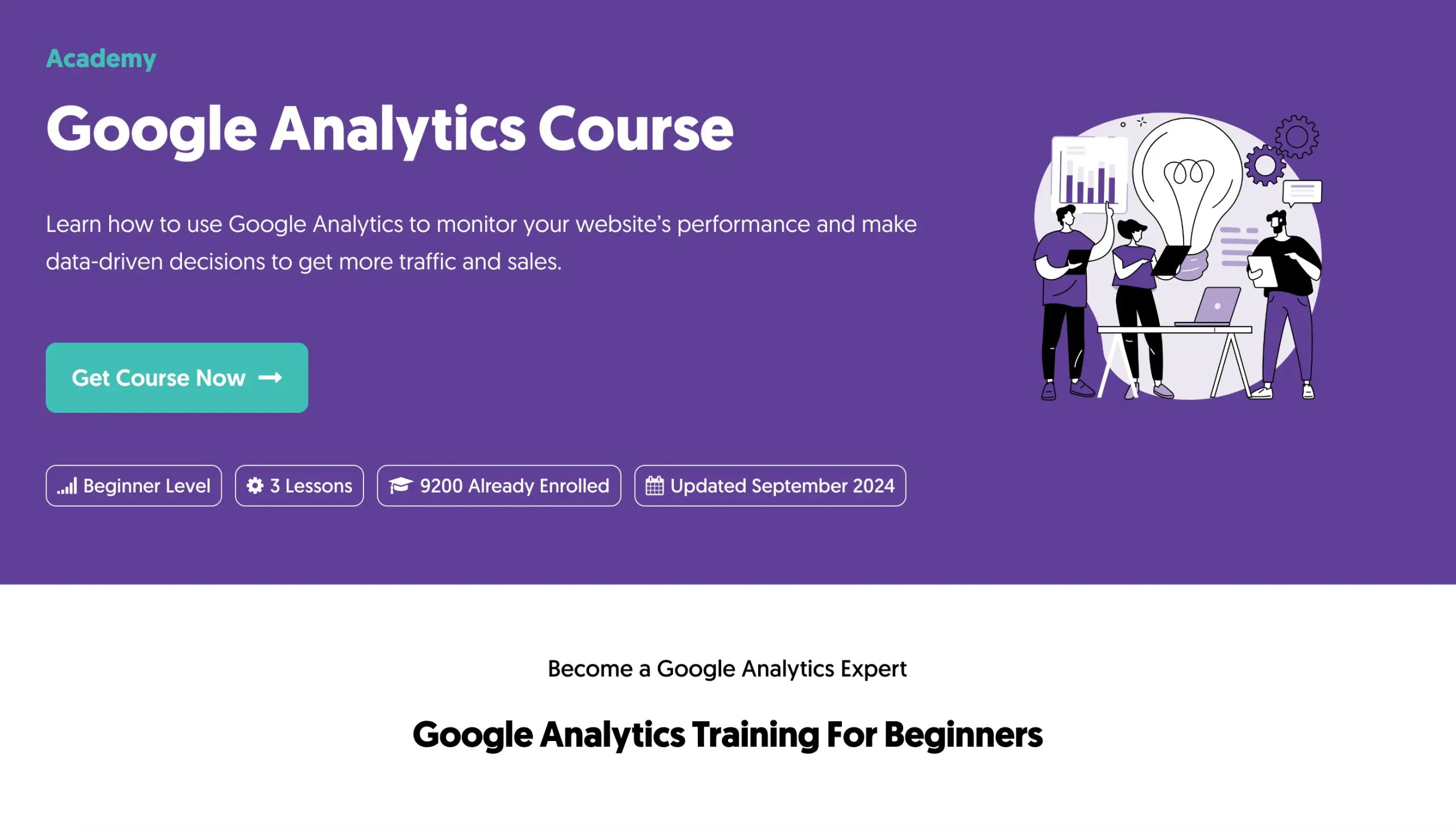 All courses are perfectly suited for beginners to Google Analytics. We added free and paid courses covering the latest version, Google Analytics 4.