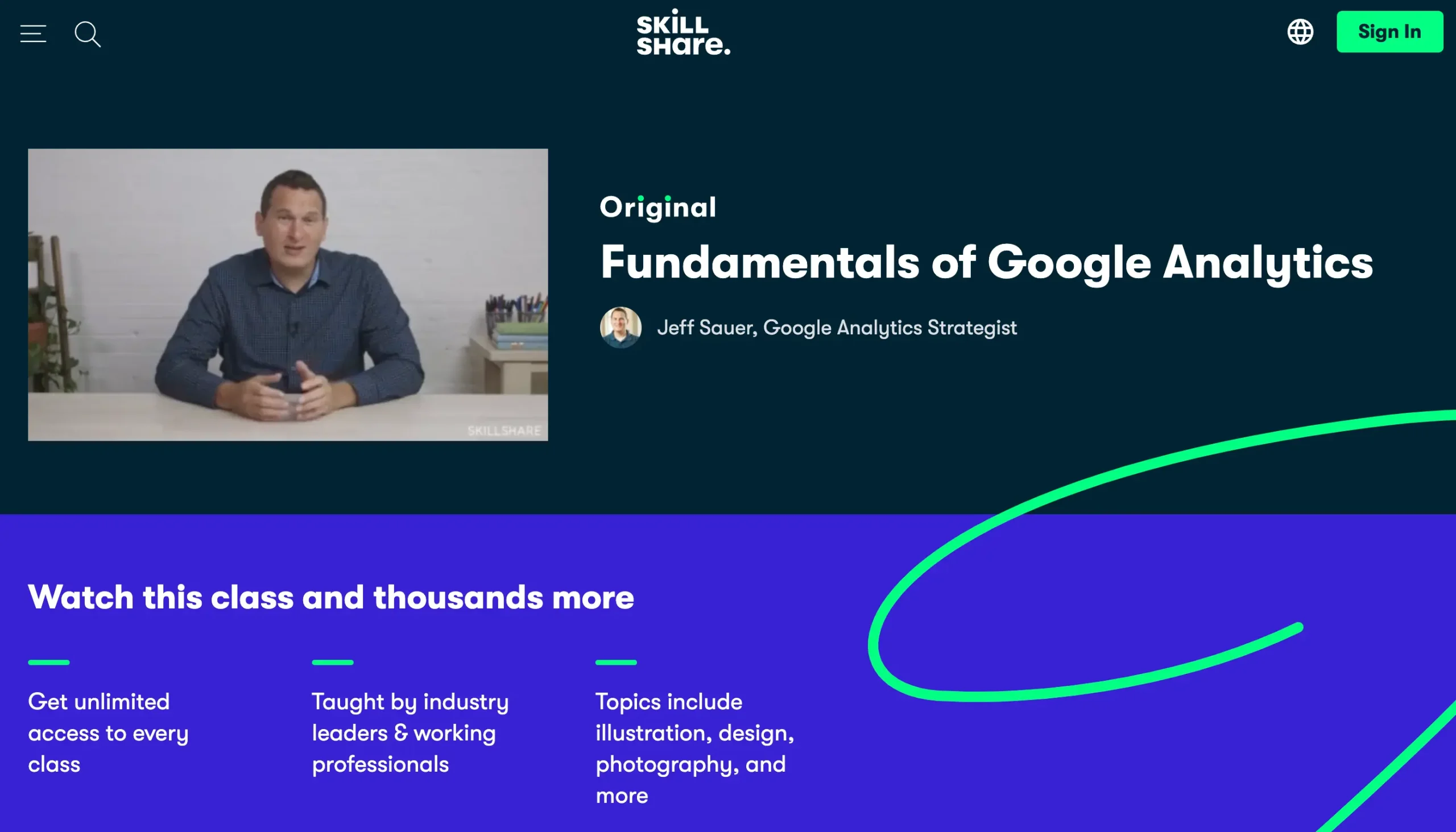 | Google Analytics For Business Marketing By Skillshare | $39 | 56 minutes | No |