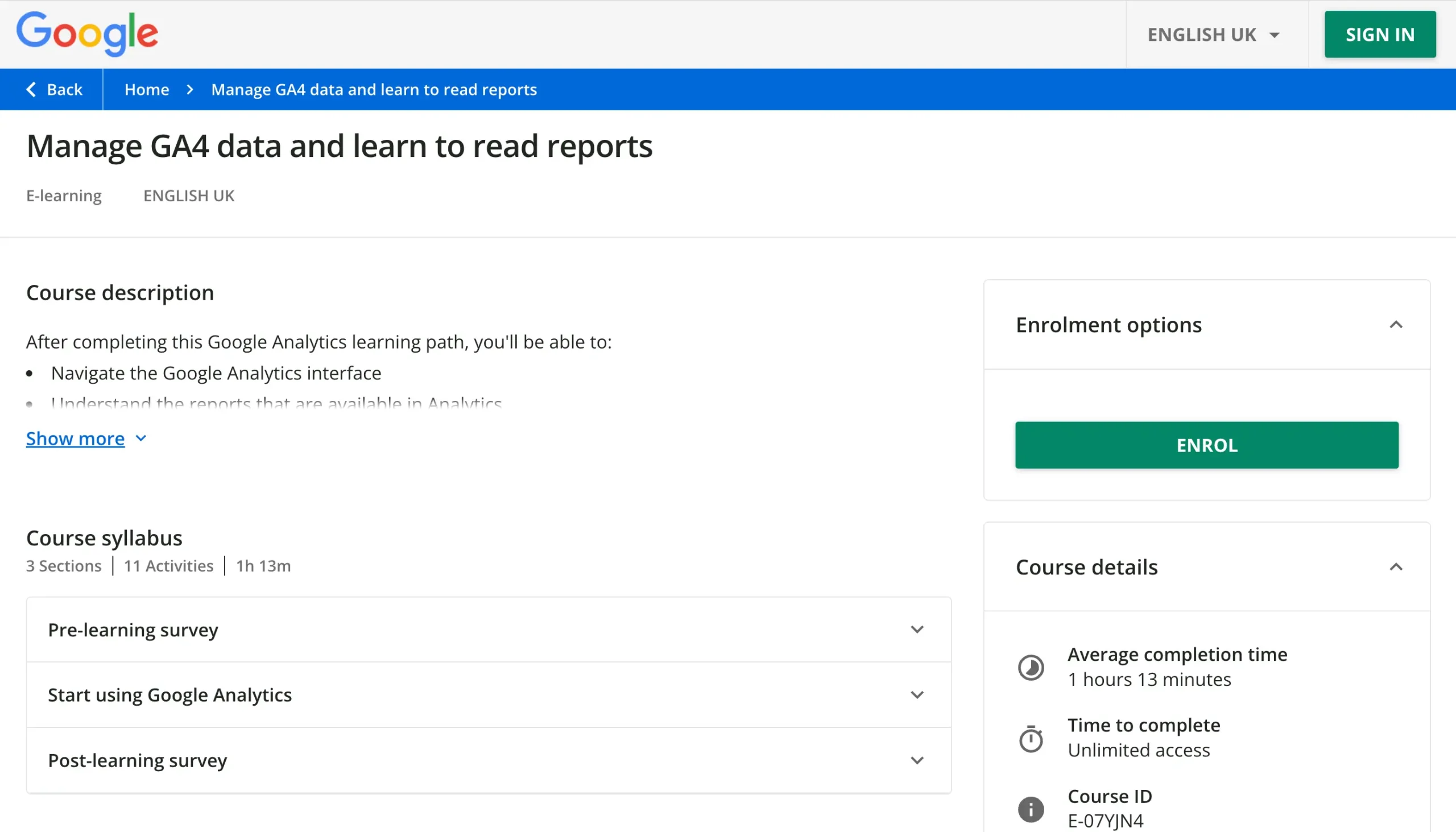 | Manage GA4 Data And Learn To Read Reports By Google | Free | 1 hour | No |