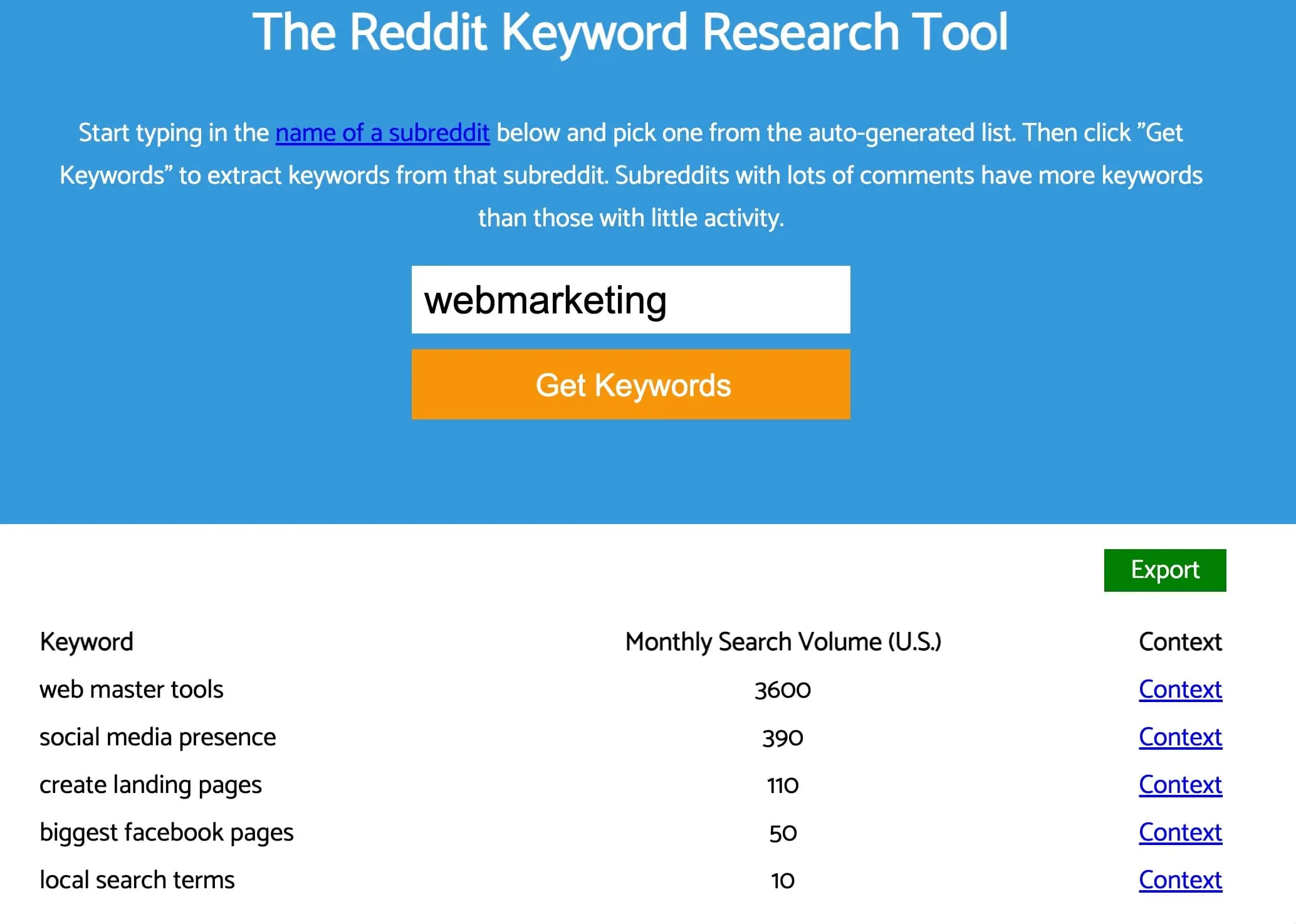 Find keywords on Reddit. The best feature is its ability to find the keywords people use on subreddits that are relevant to your business. |