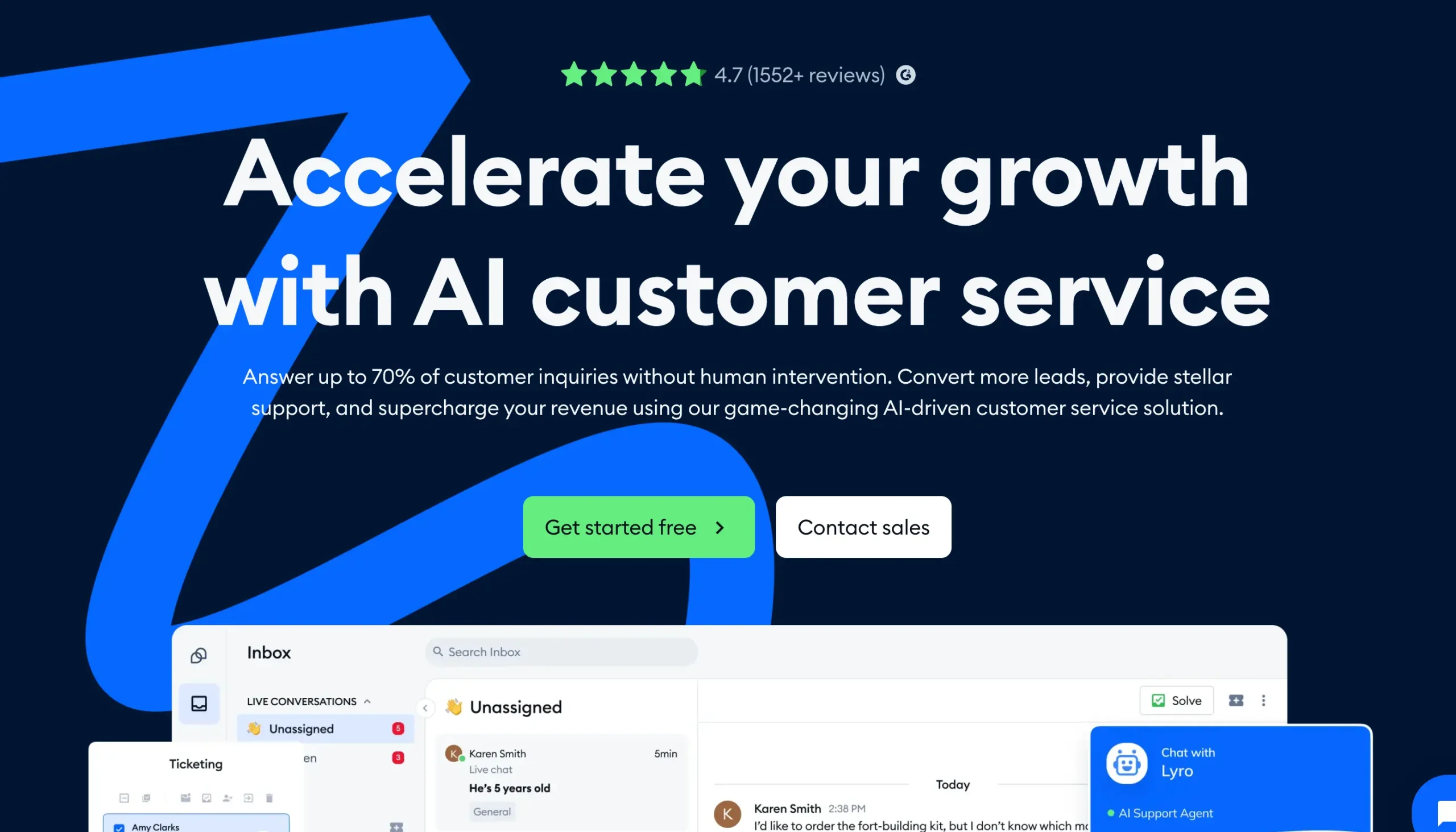 Tidio’s best features include customizable chat widgets that you can adapt to your brand and website, AI-powered chatbots, and detailed analytics for tracking customer interactions.
