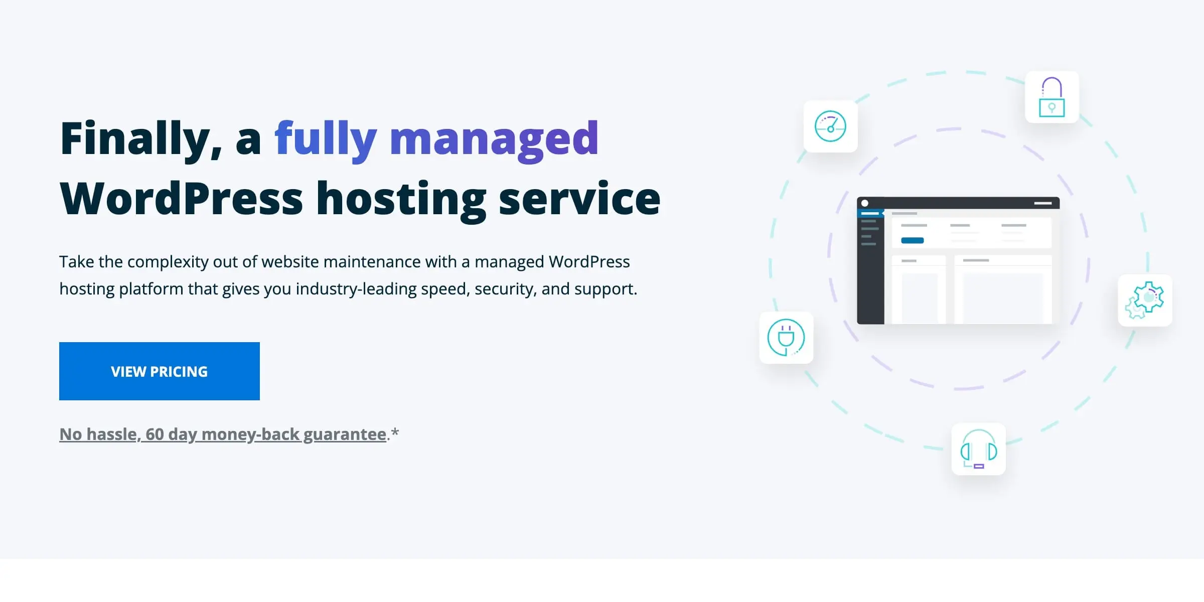- Fully managed WordPress hosting with a 60-day money-back guarantee.