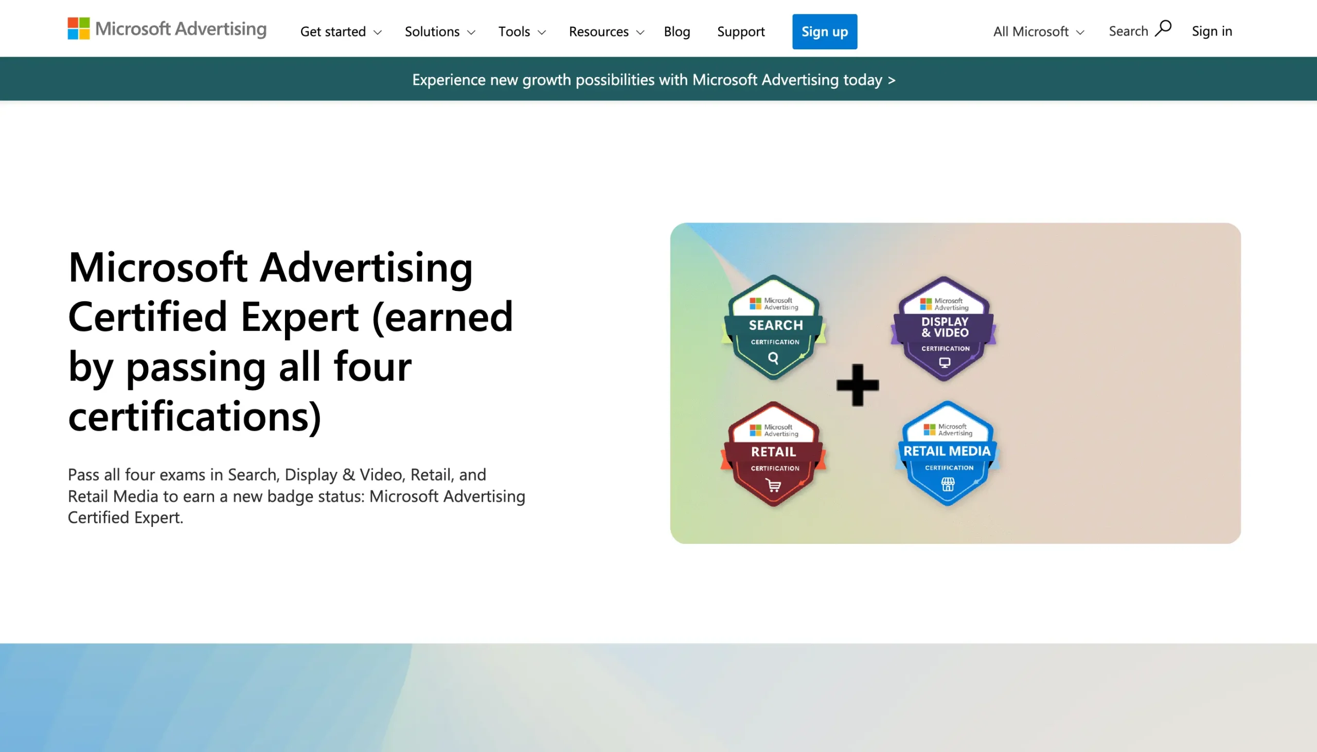 The Microsoft Advertising Certified Expert is the official advertising certification offered by Microsoft. To get certified, you need to pass 4 other certifications: