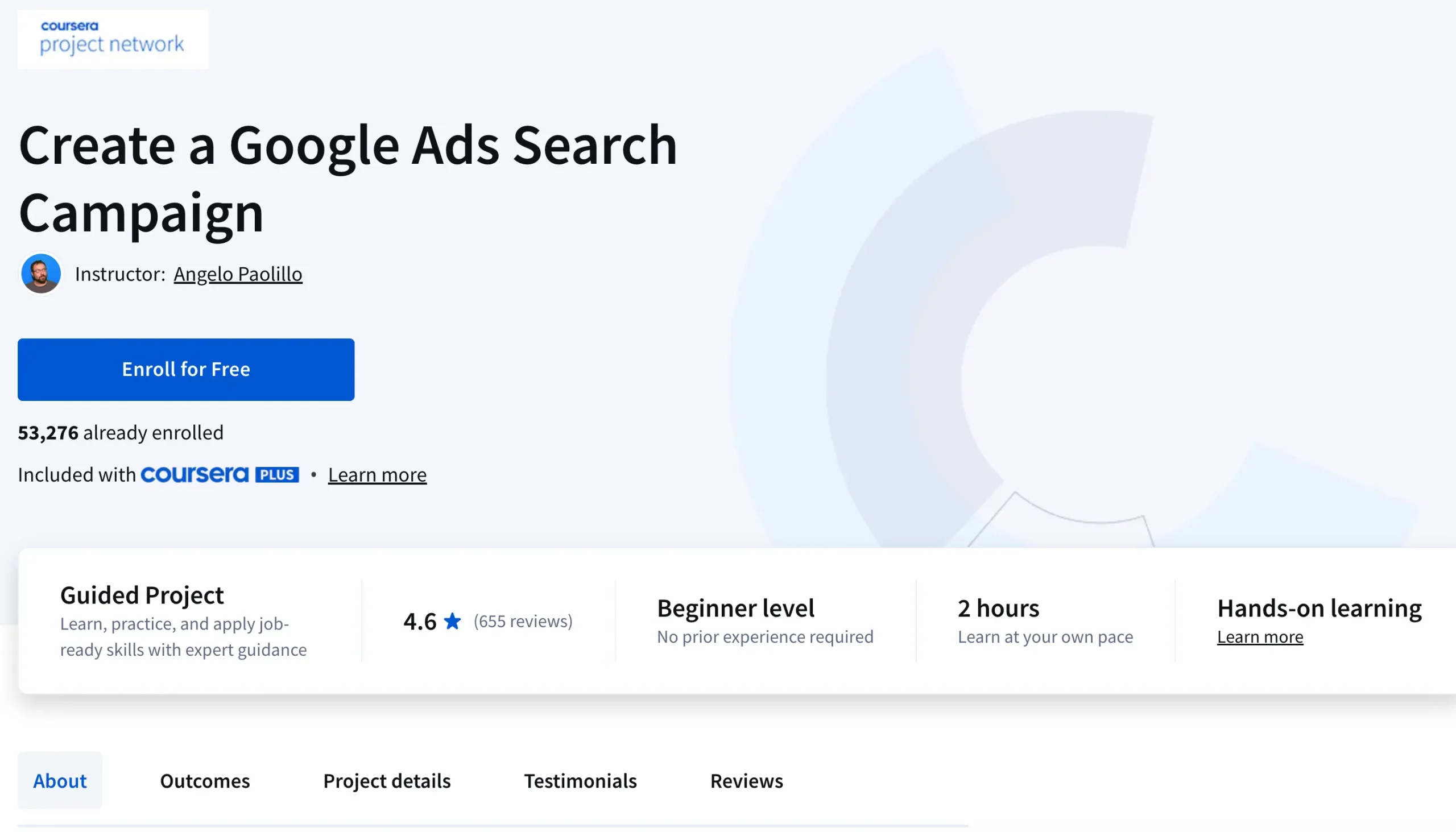 Coursera offers the Google Ads course for free. It only takes around two hours to complete, but it offers a fantastic overview of many of the critical elements of running a successful Google Ads campaign.