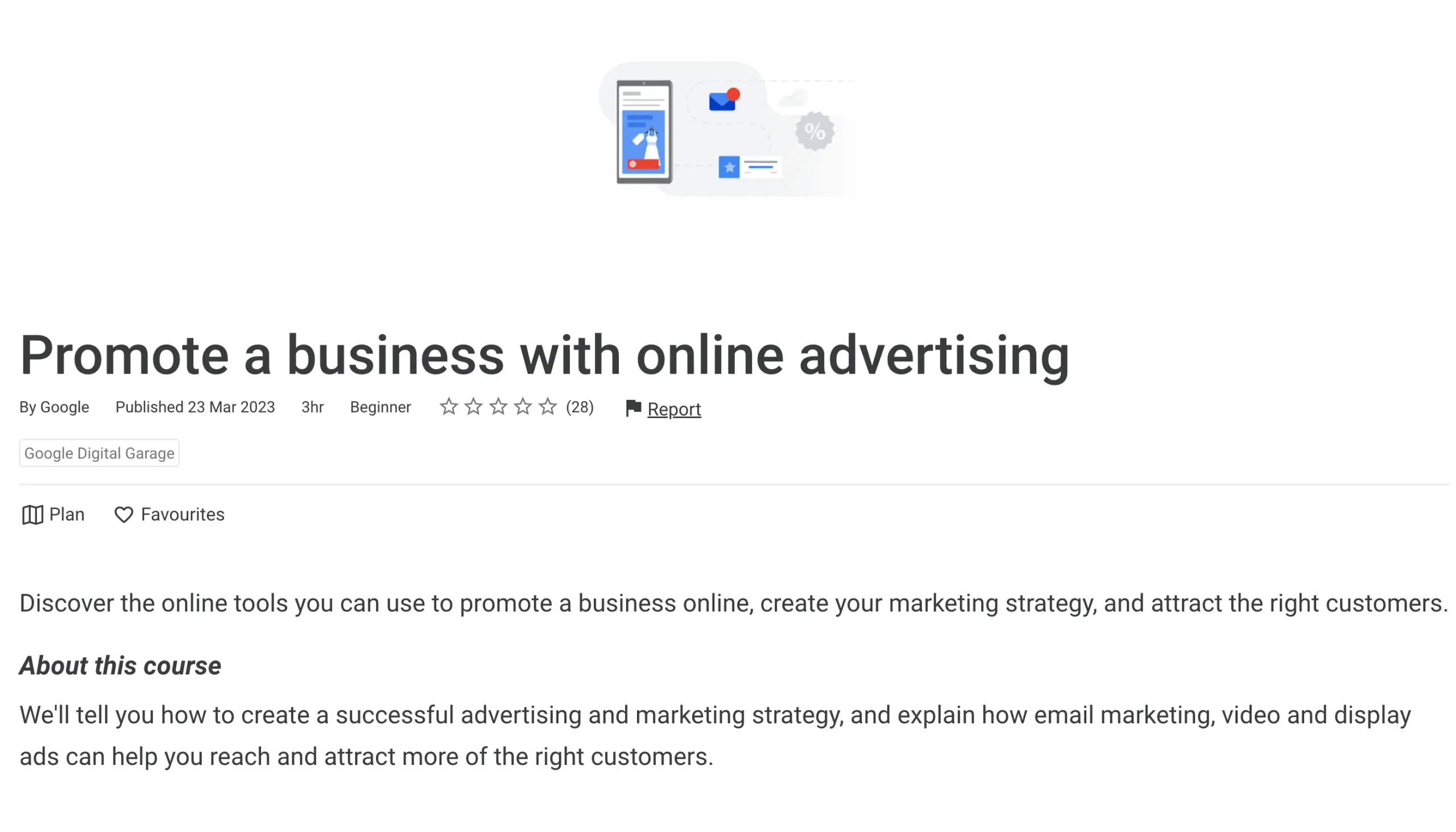 Google is the most popular search engine in the world. What better way to learn SEM than from the market leaders themselves? The “Promote a Business With Online Advertising” course is part of the Google Skillshop program that users can access for free.