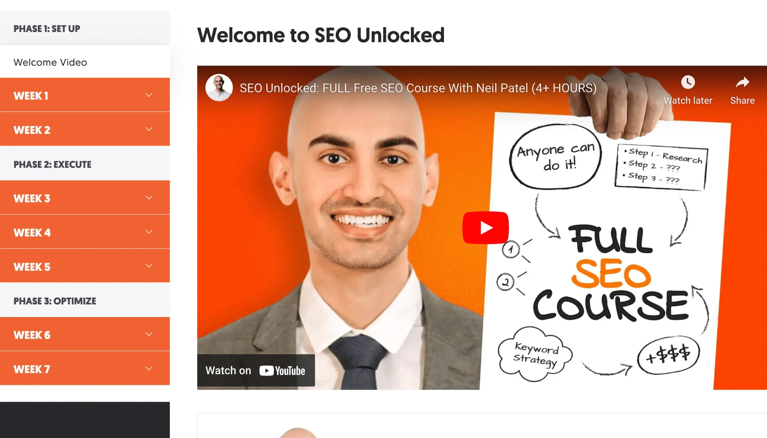 Neil Patel’s free SEO course provides a comprehensive introduction to mastering SEO.