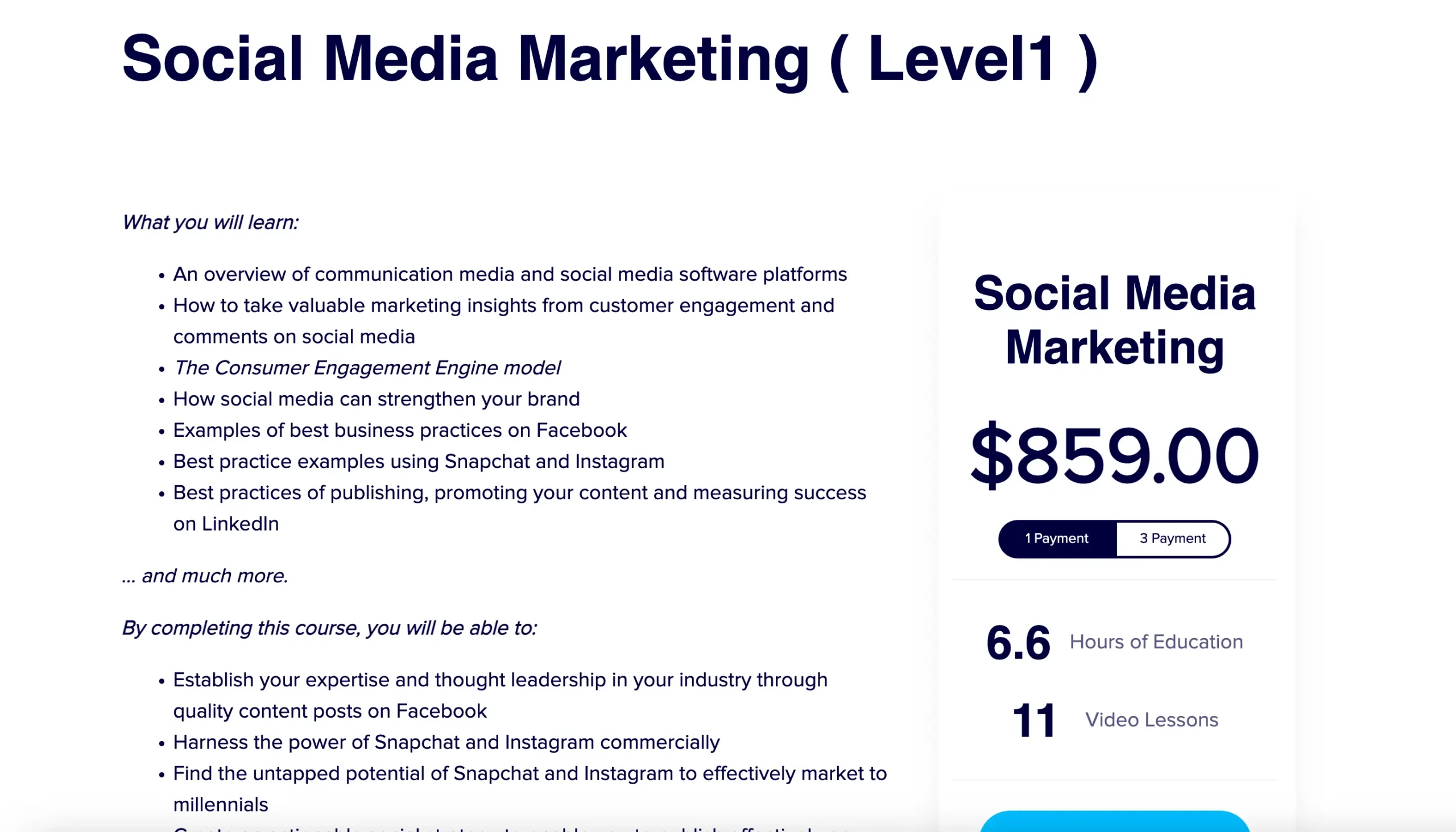 | Social Media Marketing Course By OMI | $859 | 6.6 hours |