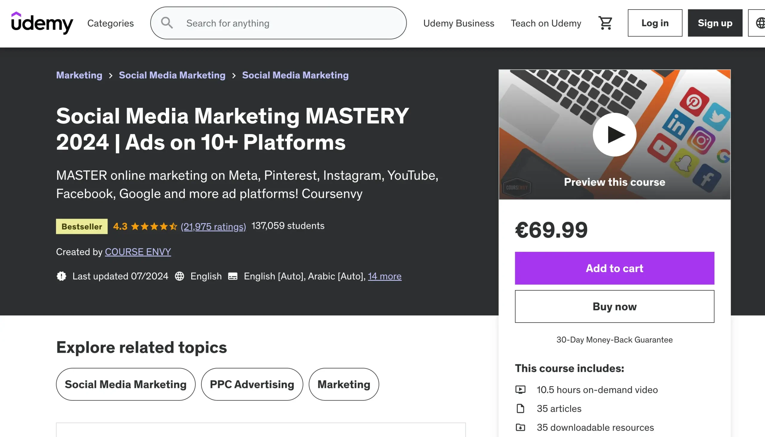 | Social Media Marketing Mastery By Udemy | $99 | 10.5 hours |