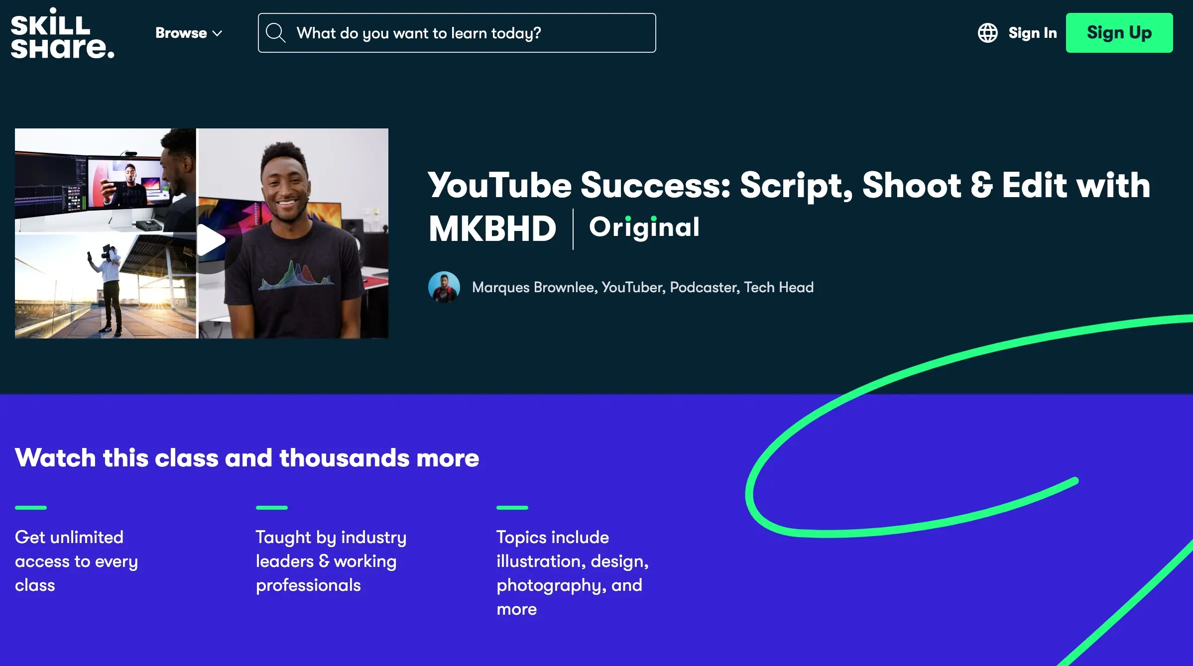 | YouTube Success: Script, Shoot & Edit with MKBHD | SkillShare | $32/mo |