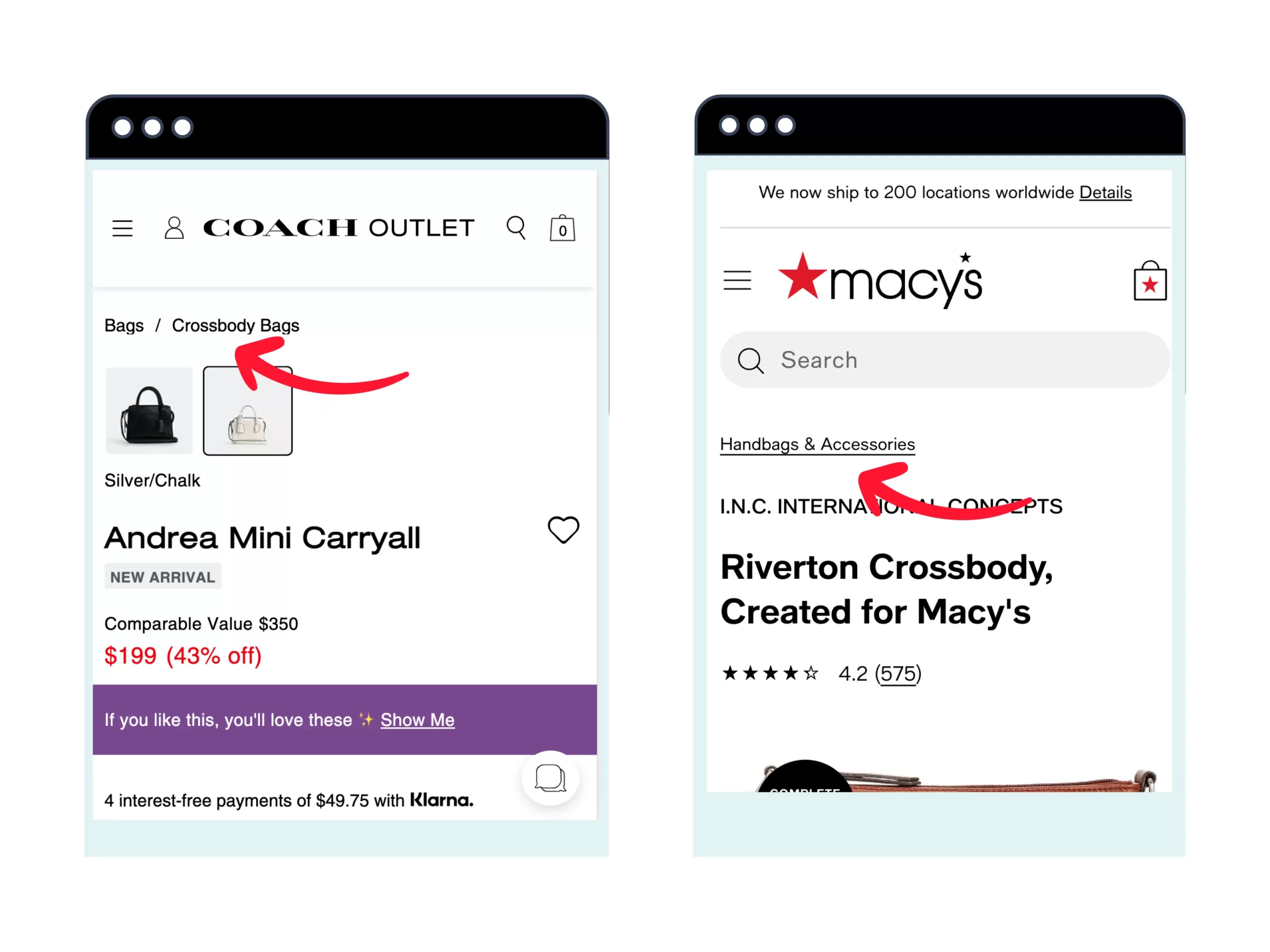 Notice how the breadcrumb helps users select different product attributes without leaving the current page.