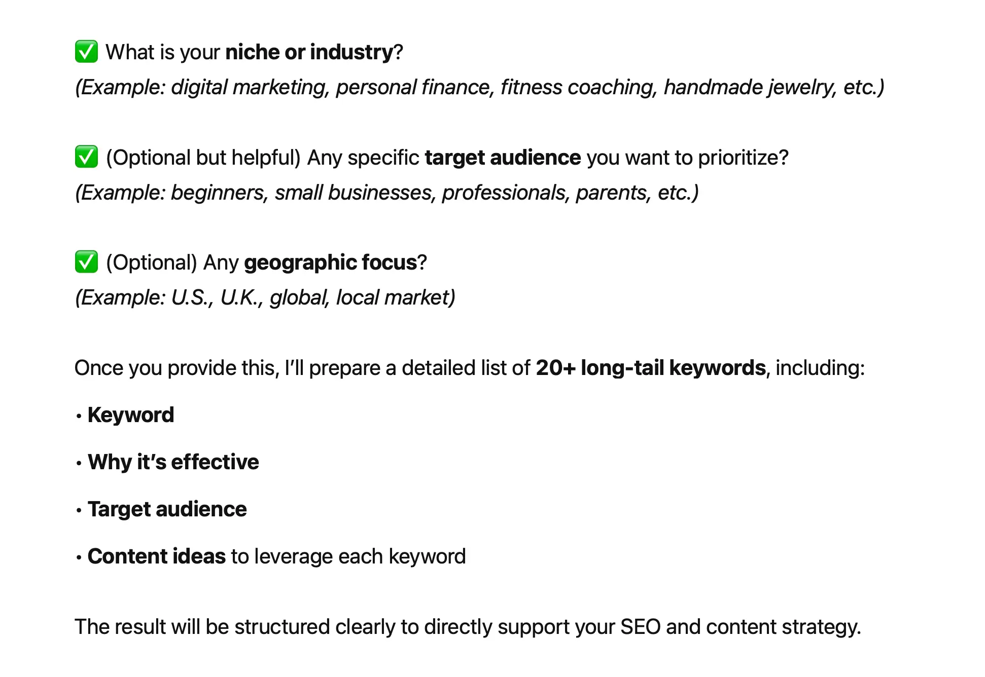 Find Long-Tail Keywords for SEO: ChatGPT Prompt