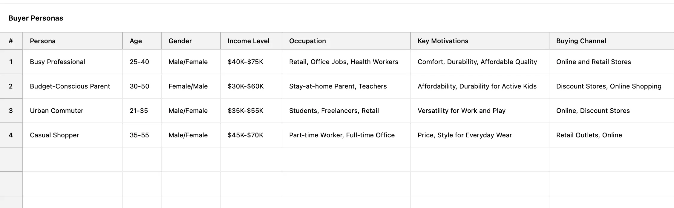 Use AI tools like ChatGPT to create buyer personas. These personas should include details like job roles, key motivations, goals, and preferred channels.