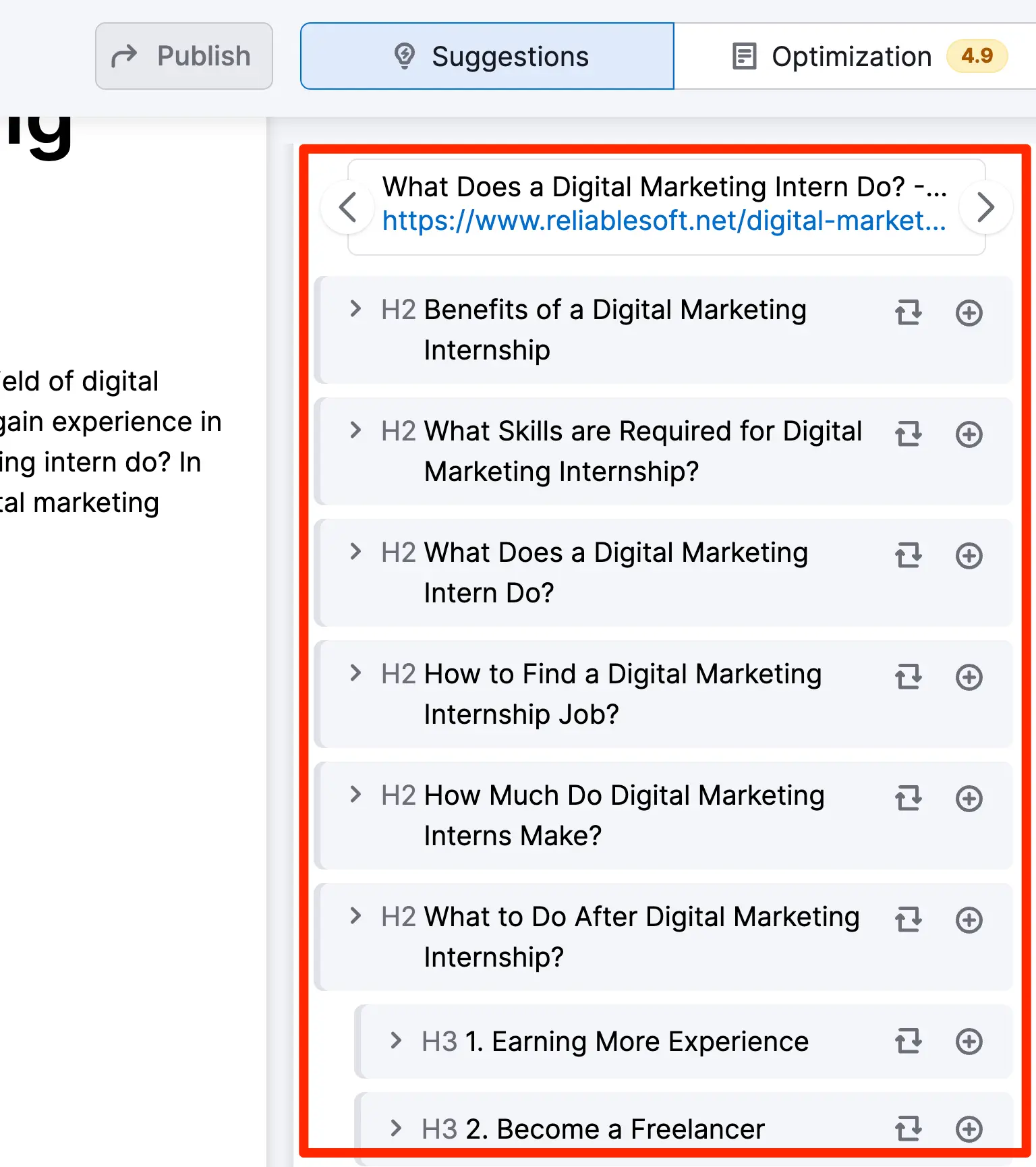 For the purpose of this review, we decided to use ContentShake AI to write an article with the title “What Does a Digital Marketing Intern Do?”.