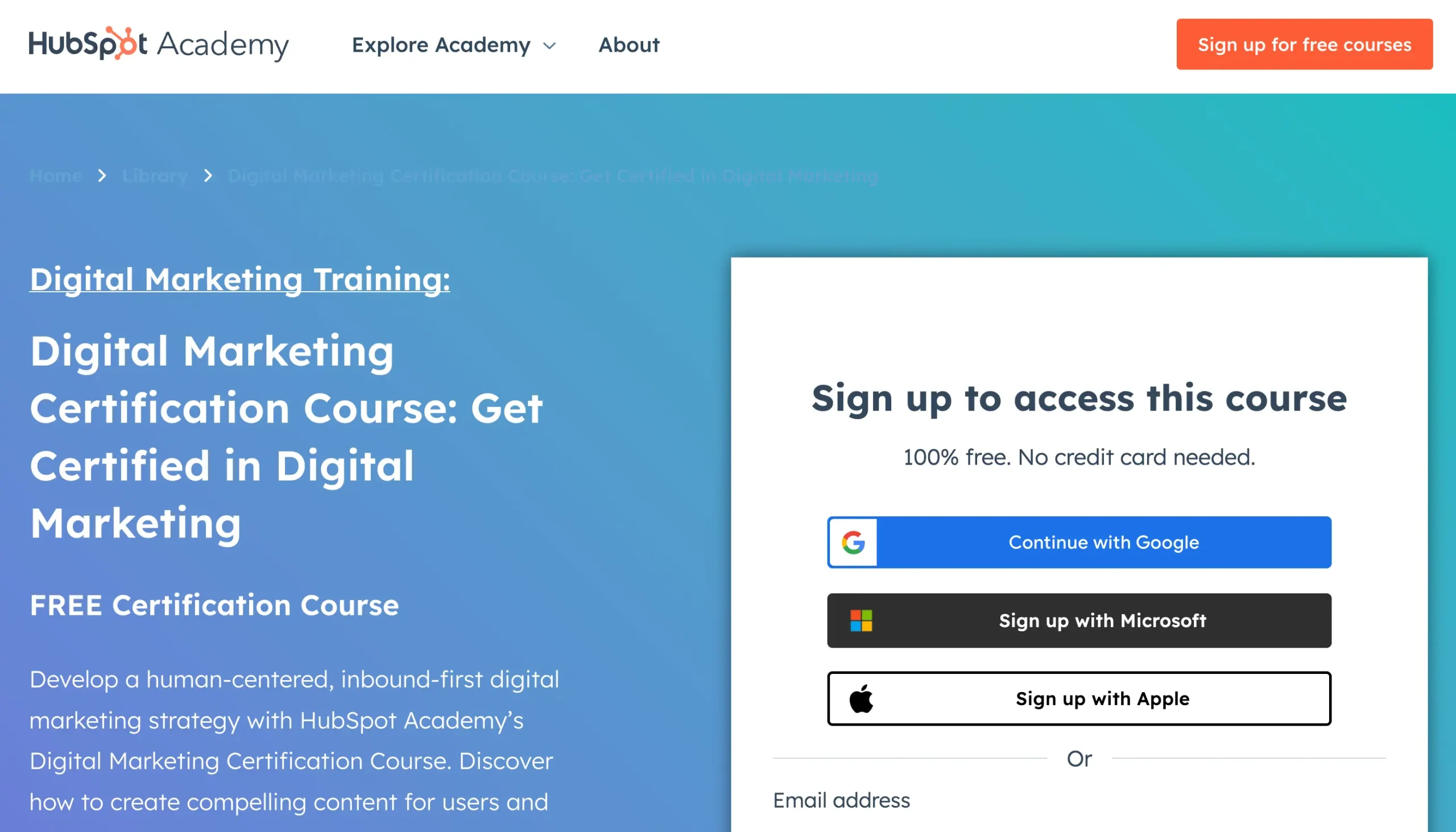 | HubSpot Digital Marketing Certification Course | Getting a quick overview of digital marketing. | Free | 6 hours |