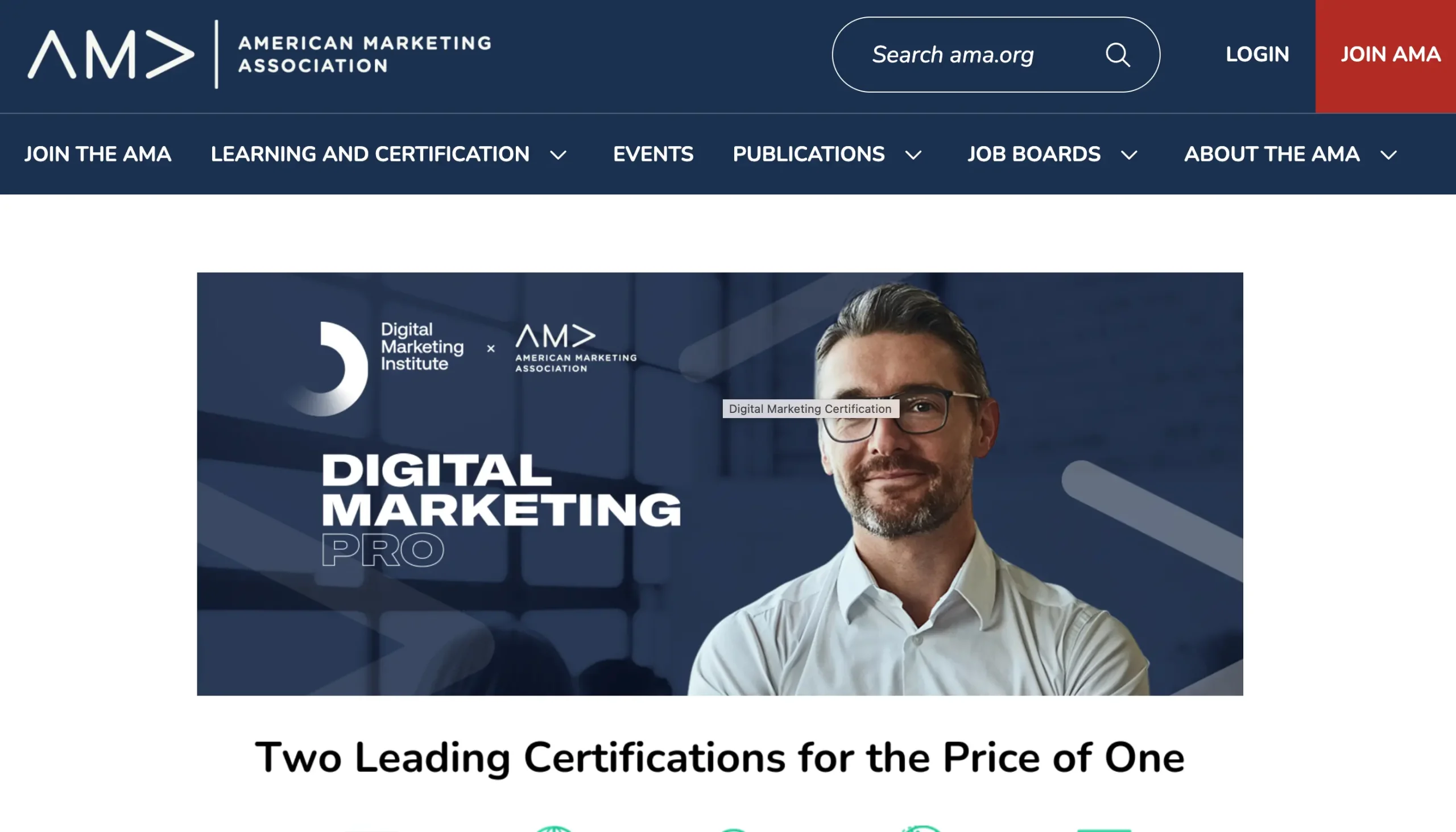 The AMA offers two marketing certifications in cooperation with the Digital Marketing Institute: the PCM Digital Marketing Certification and the Certified Digital Marketing Professional (DMI Pro).