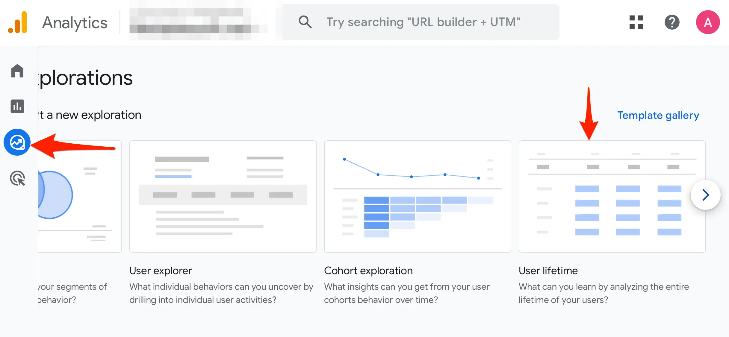 - At the top of the screen, click Template Gallery, then select the User lifetime template.