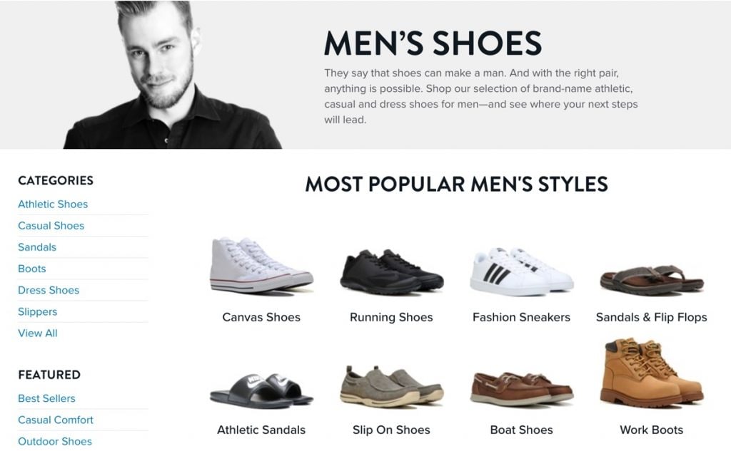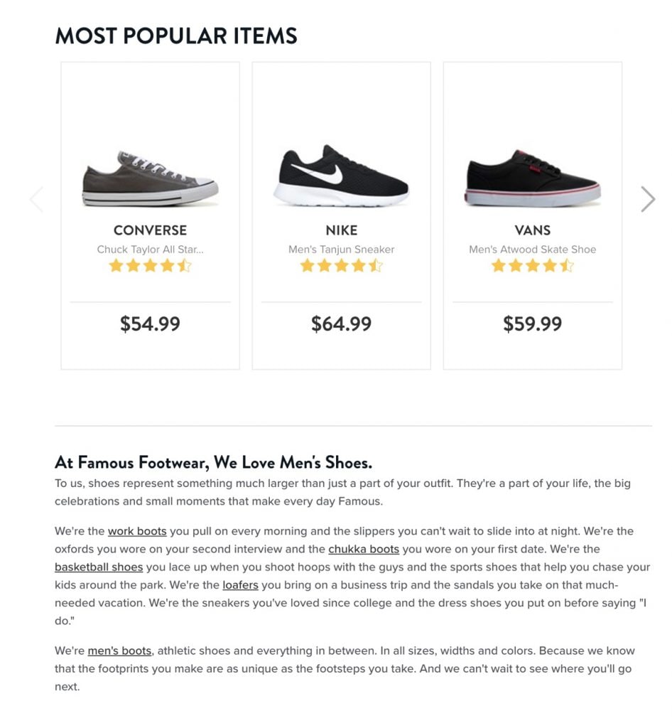 As you can see in the example above, at the bottom of the category page, they added a couple of paragraphs of optimized content and internal links to product sub-categories, which is great for SEO.