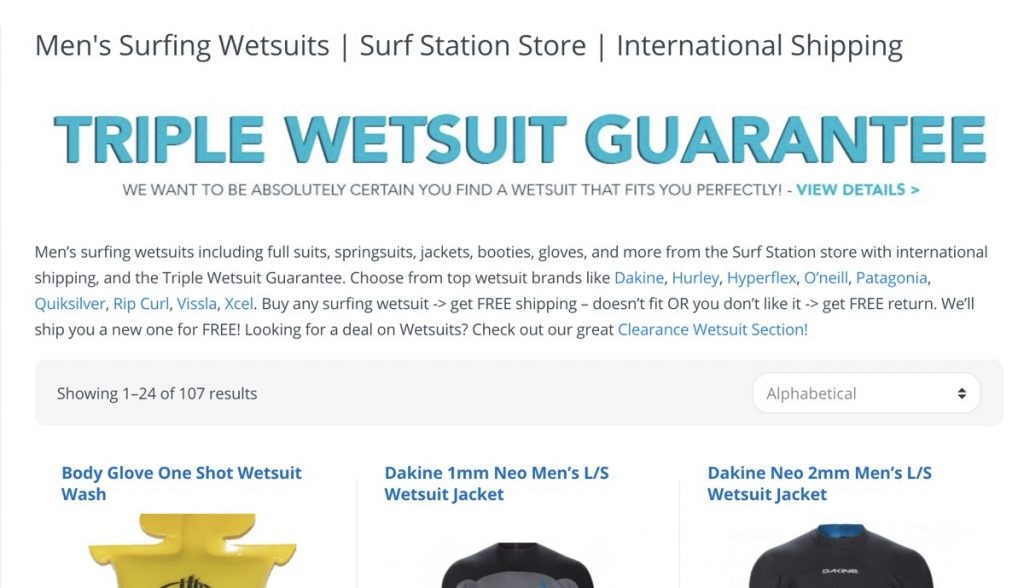 For example, let’s assume that you are selling men’s surfing wetsuits like the example below.