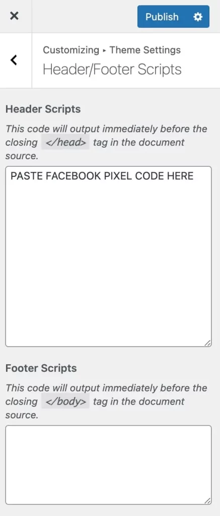 To sum up, if you’re running a blog or a non-eCommerce website, you can add the code using the free version of PixelYourSite or add it manually to the “Header/Footer Scripts” section of your website.
