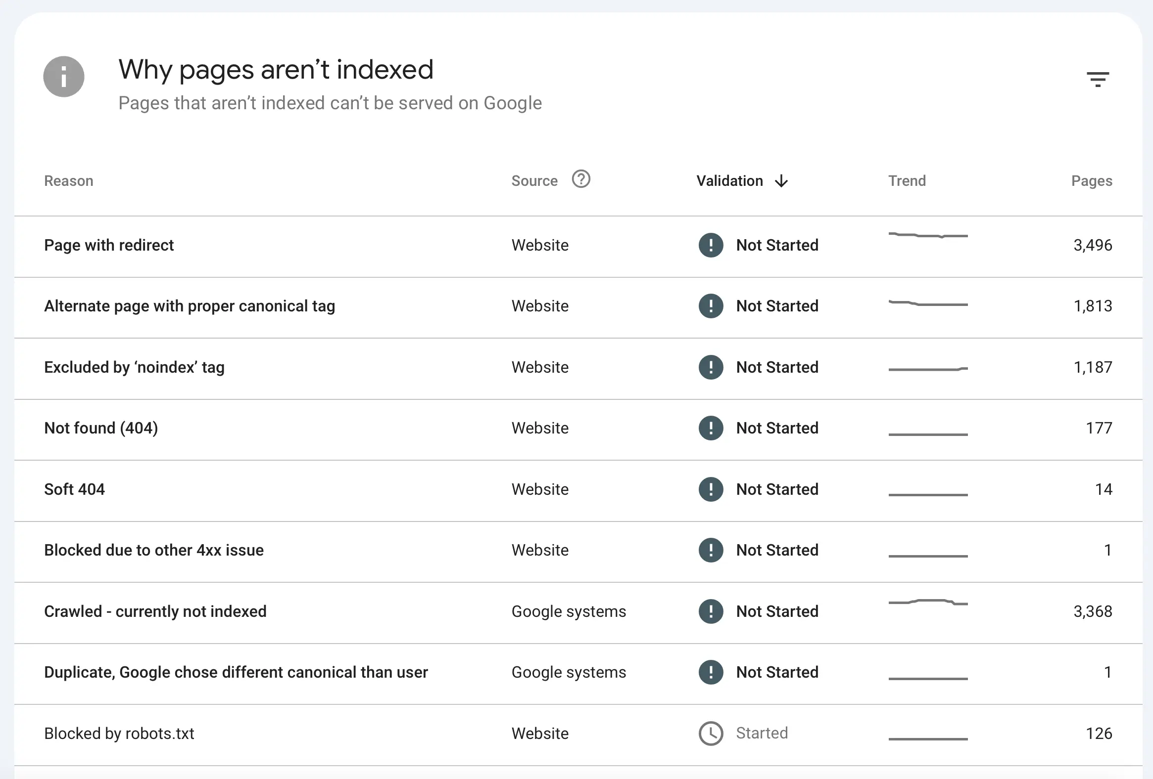 When you're done investigating, use Validate Fix in the Page indexing report to ask Google to verify if the issue is resolved.