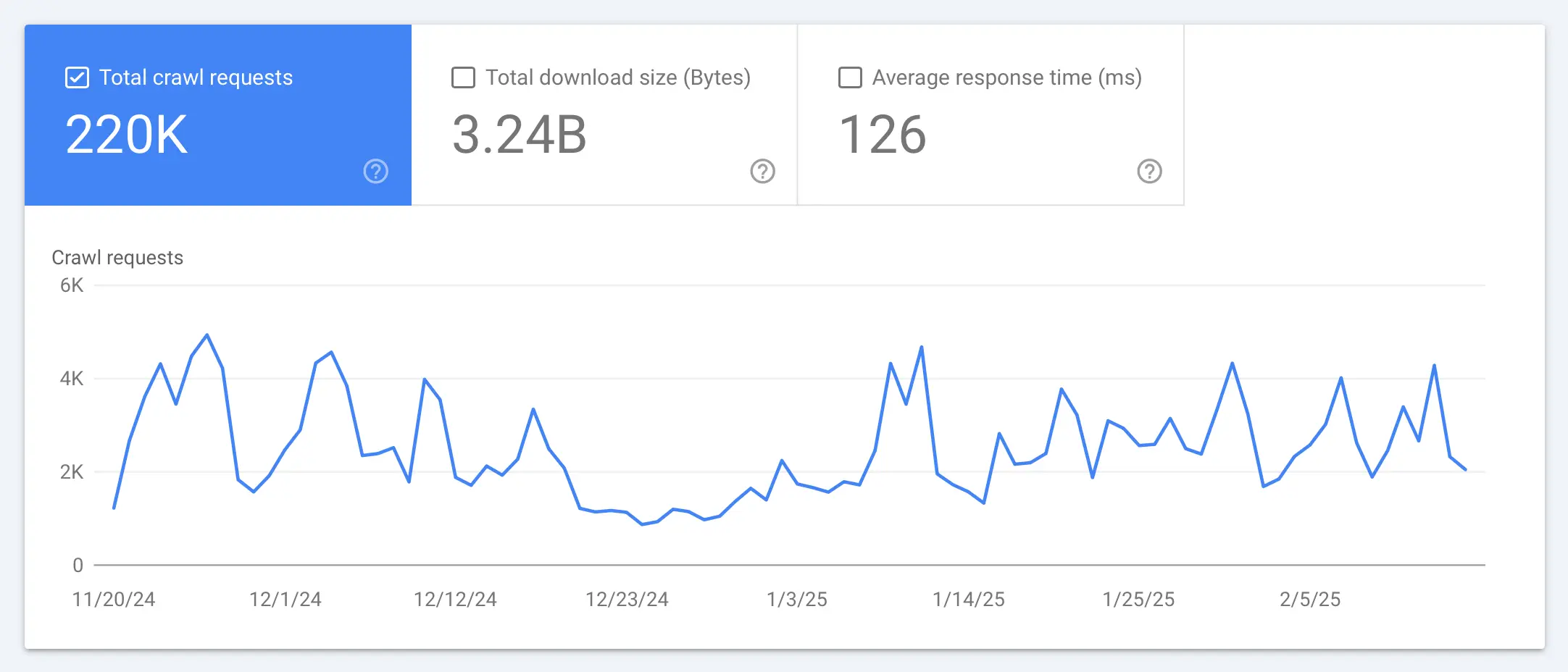 Start by checking the Crawl Stats Report in Google Search Console under Settings > Crawl Stats. This report provides information on how often Googlebot visits your site and whether there are any errors.