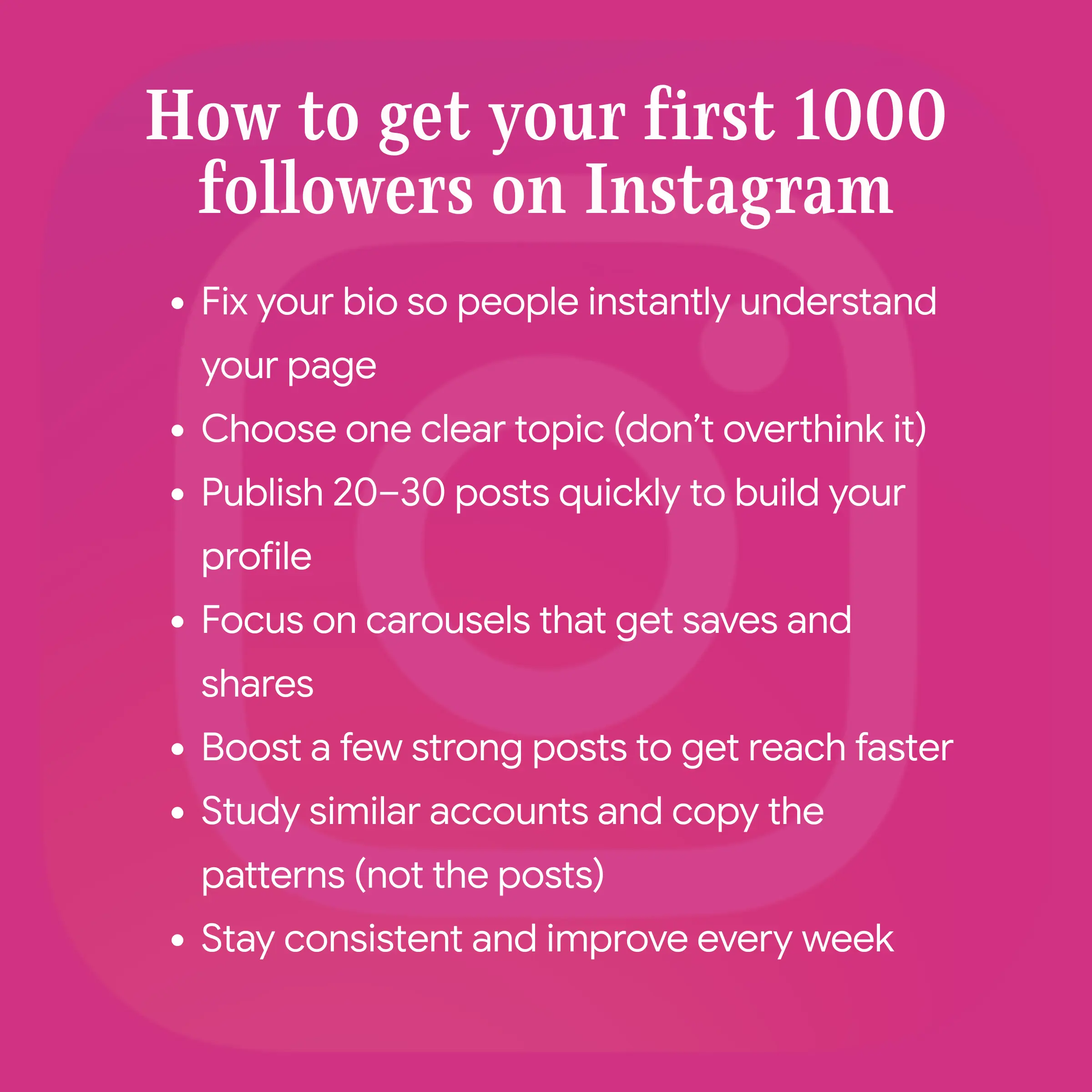 - Study similar accounts and copy the patterns (not the posts)