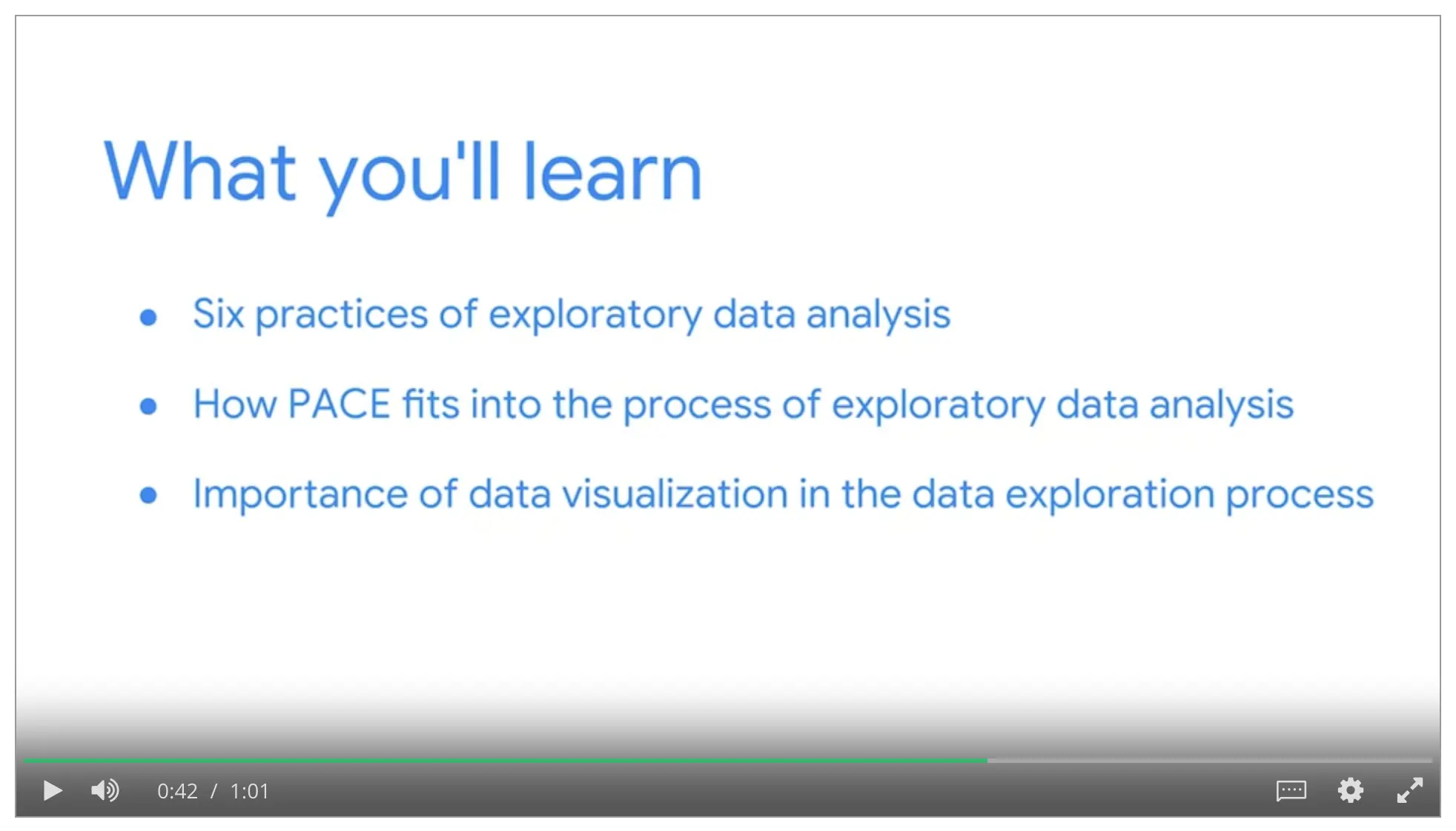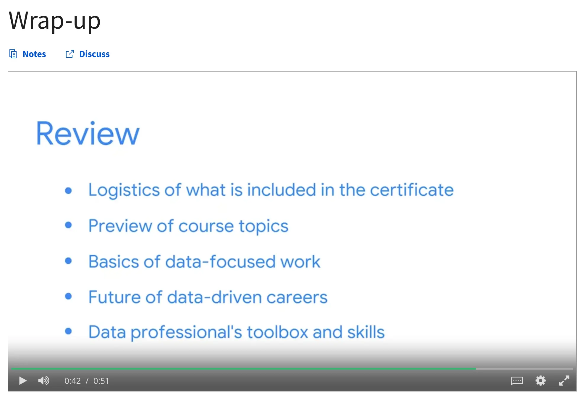 Once you get to this point, you’ll be 10 hours away from receiving your Googe Advances Data Analytics Certificate.