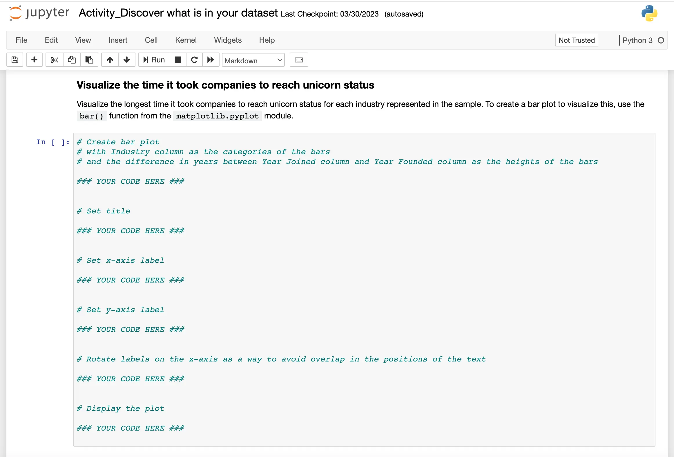 It will teach you the fundamentals of data cleaning and visualizations