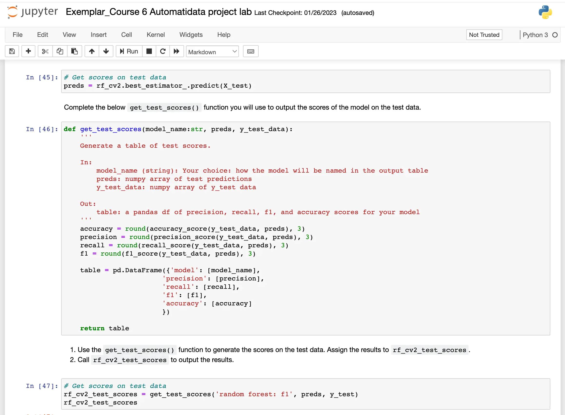 Here is an example of how the code you’ll have to write as part of the end-of-course project.