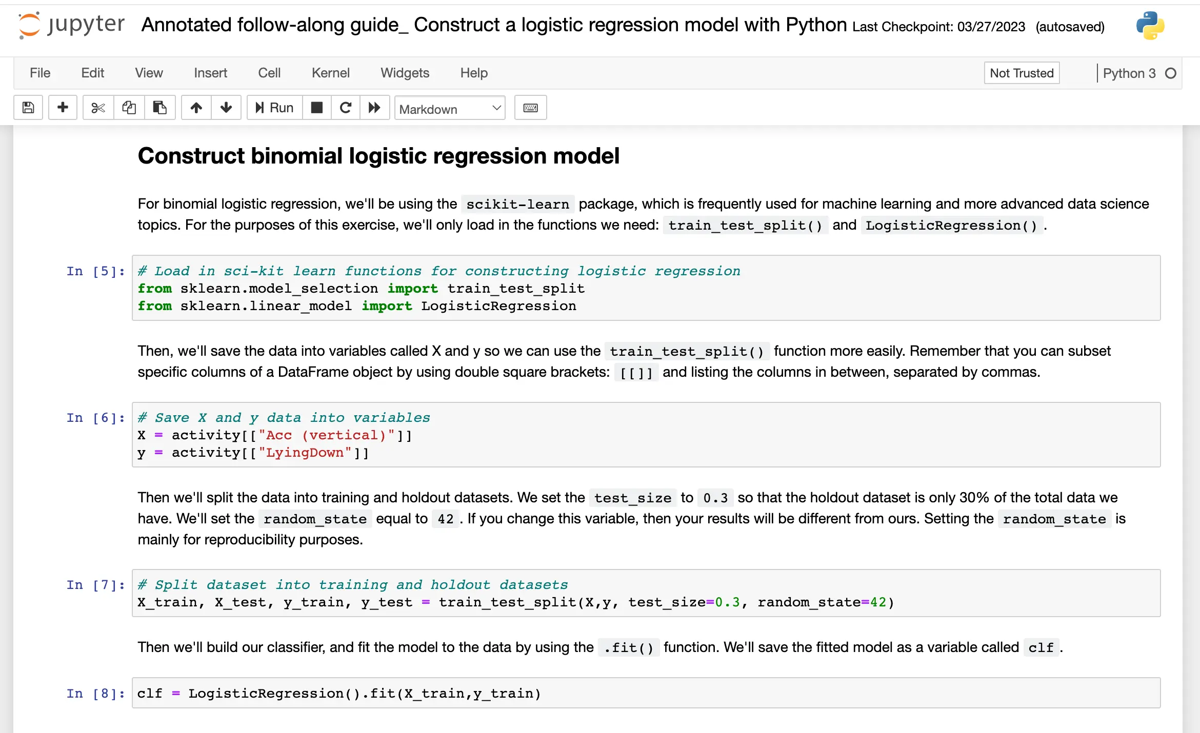 During week 5, you’ll learn how to build a binomial logistic regression model and how data professionals use this type of model to gain insights from their data.
