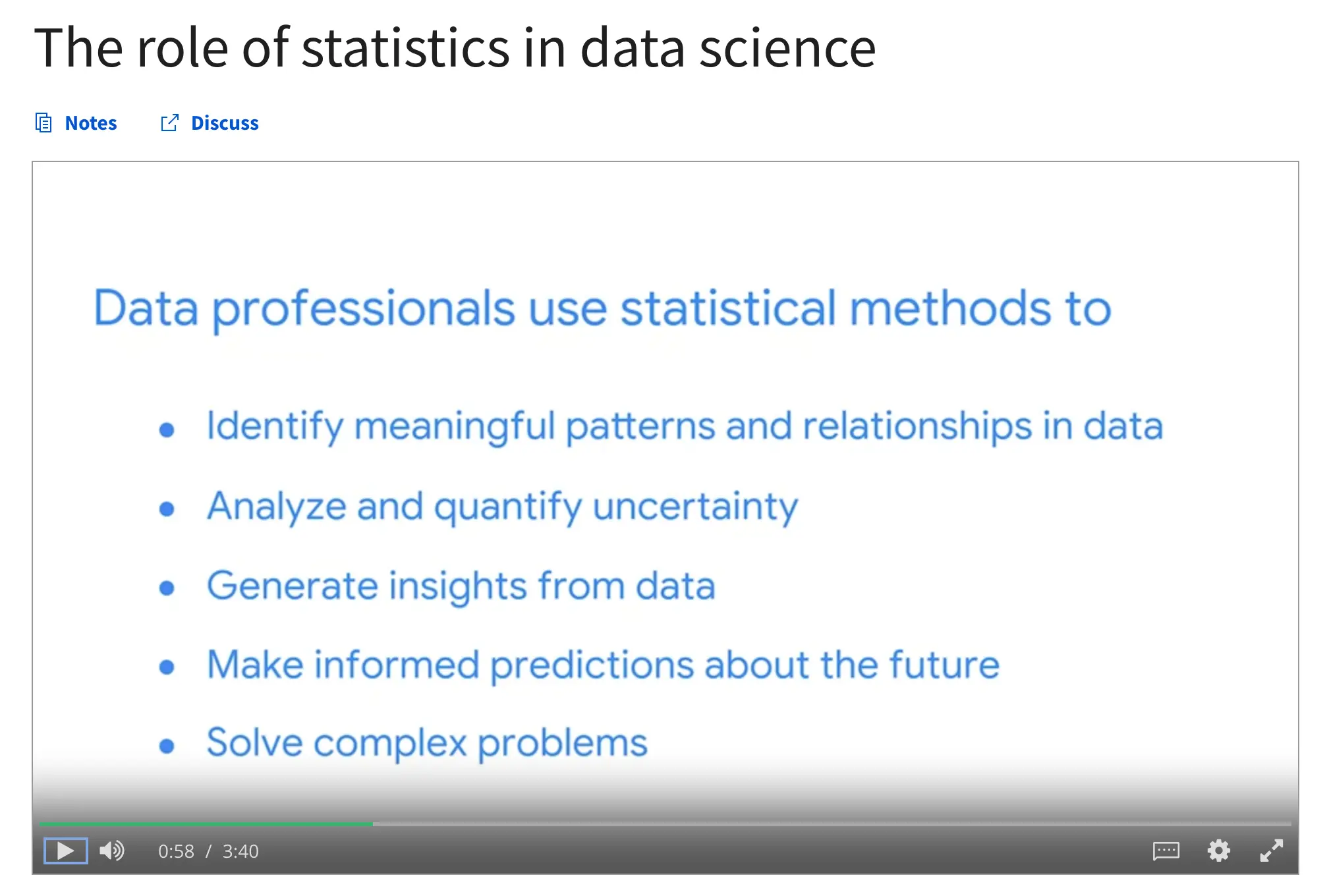 Some of the topics are related to tips on how to approach your learning and how to use tools like Excel and Google Docs, and if you’re familiar with this, you don’t have to spend too much time on this course.