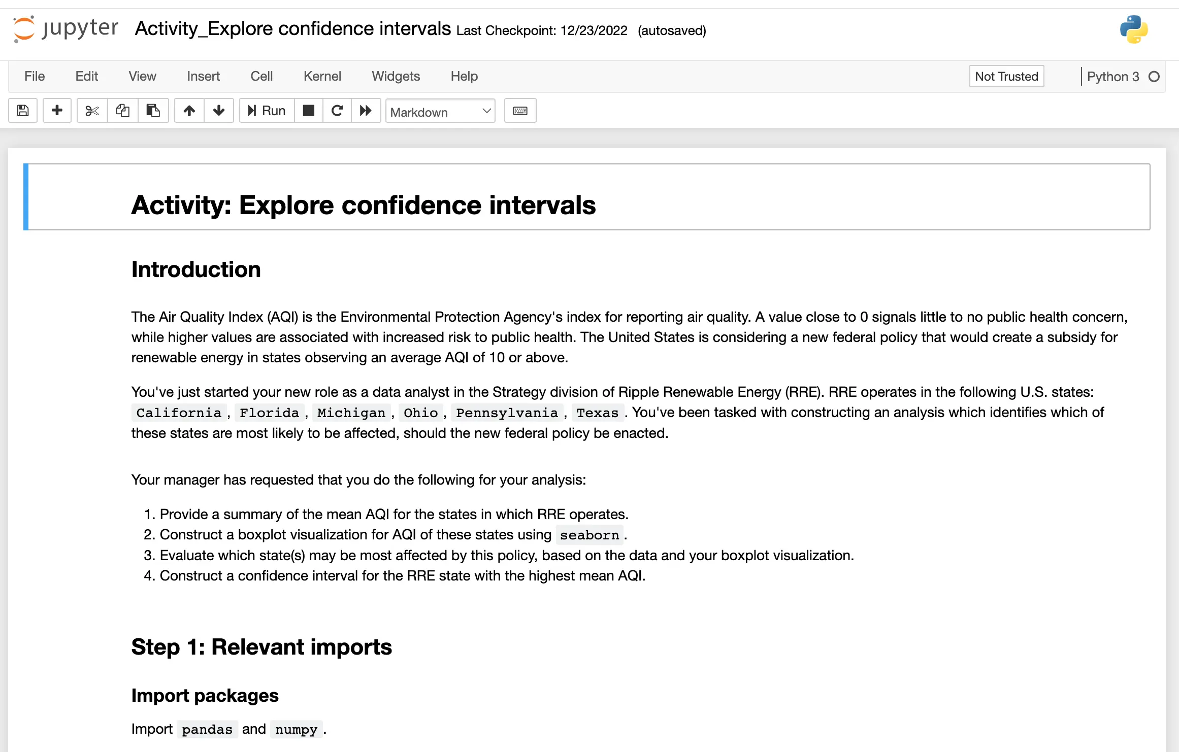 This course teaches you how to use Python for statistics analysis. You’ll be introduced to concepts related to statistics, probability, sampling, and hypothesis testing.