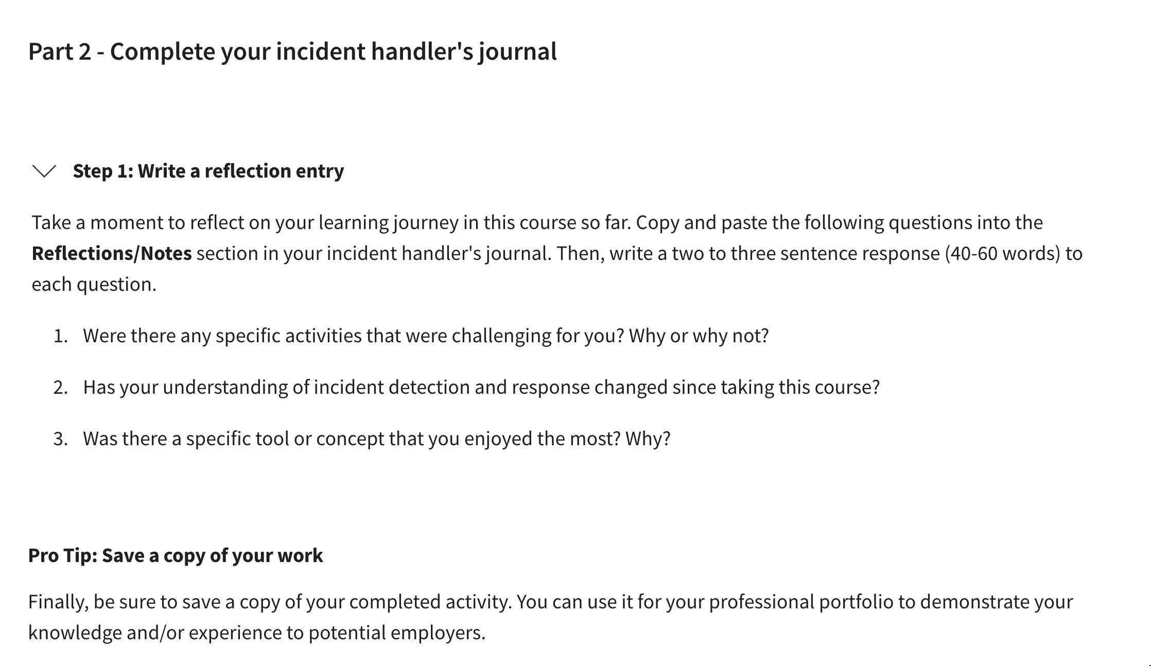| Week 4 | Use playbooks to respond to incidents | 3 hours |