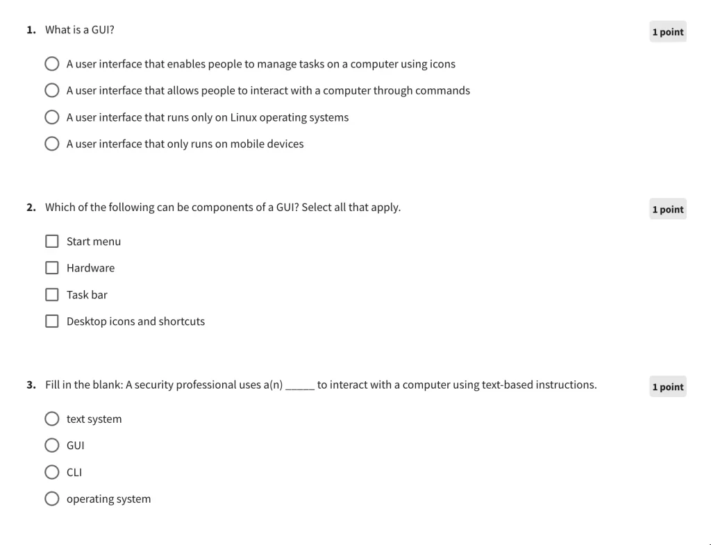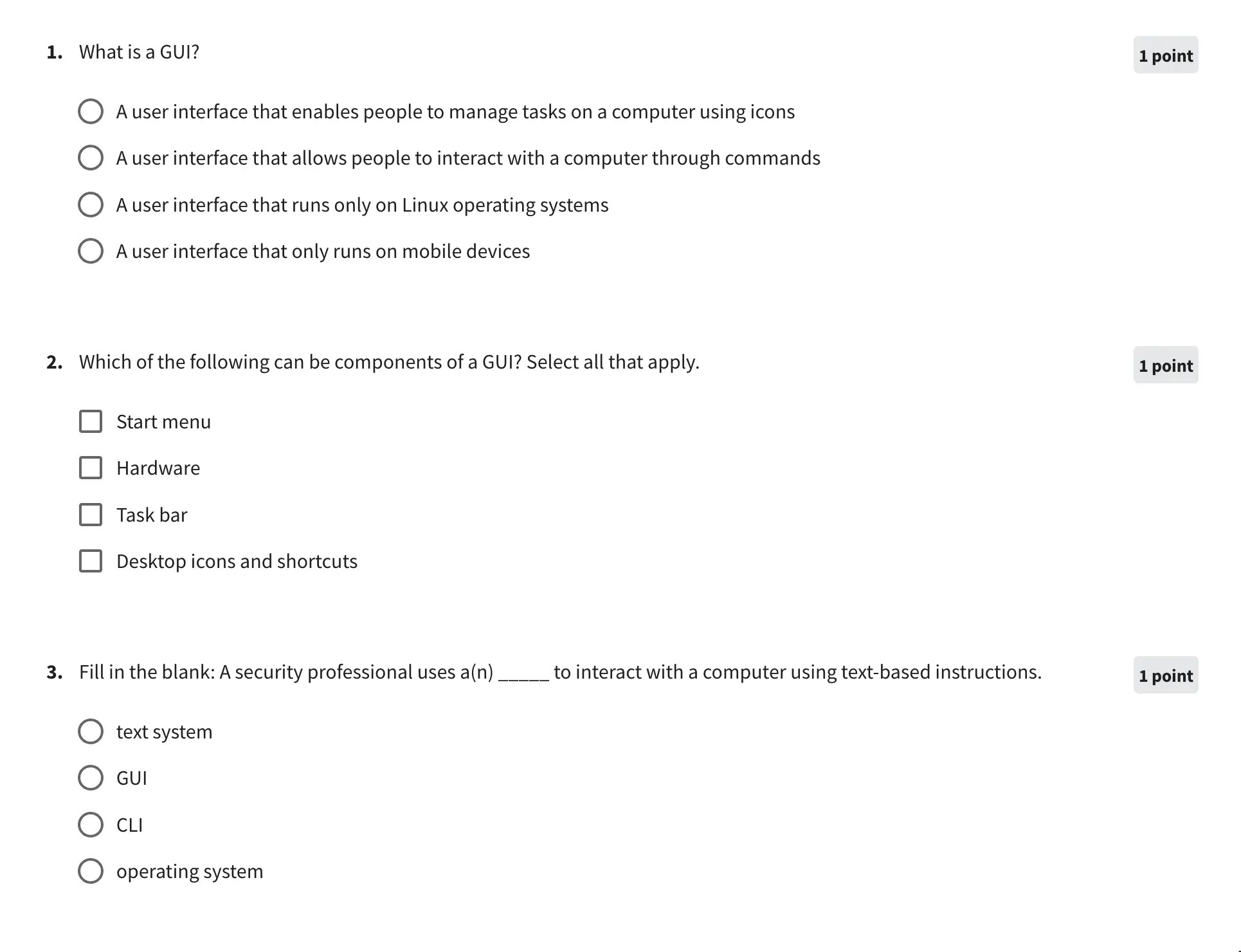 The course starts with an introduction to operating systems and then takes a deeper dive into Linux.