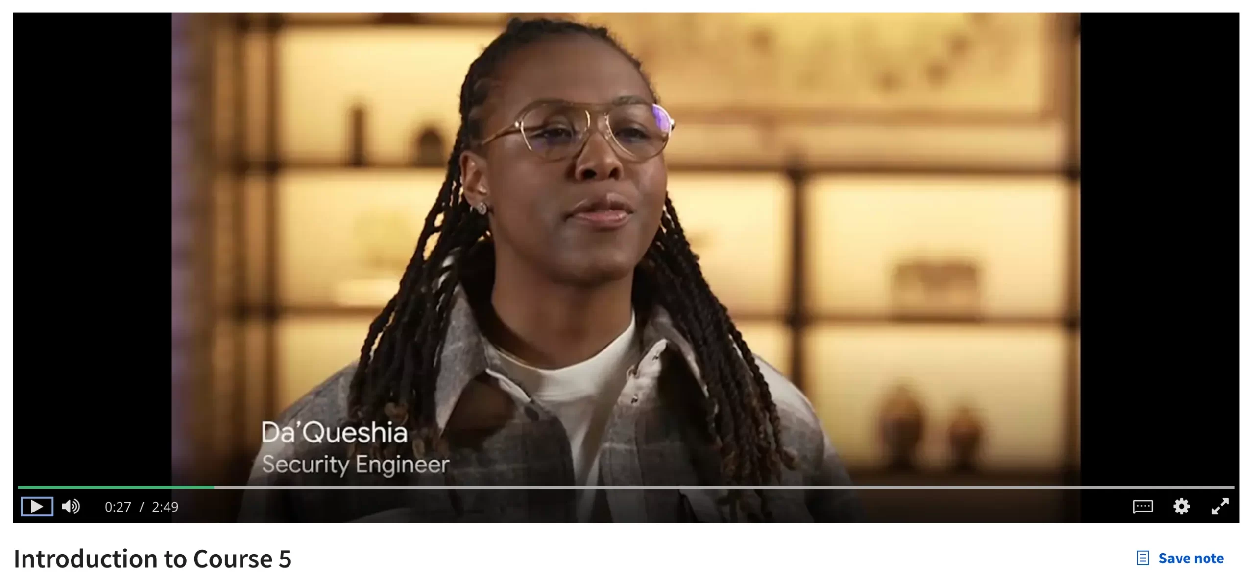 Assets, Threats, and Vulnerabilities is the fifth course in the Google Cybersecurity certification. Da'Queshia, a security engineer at Google, teaches the course.