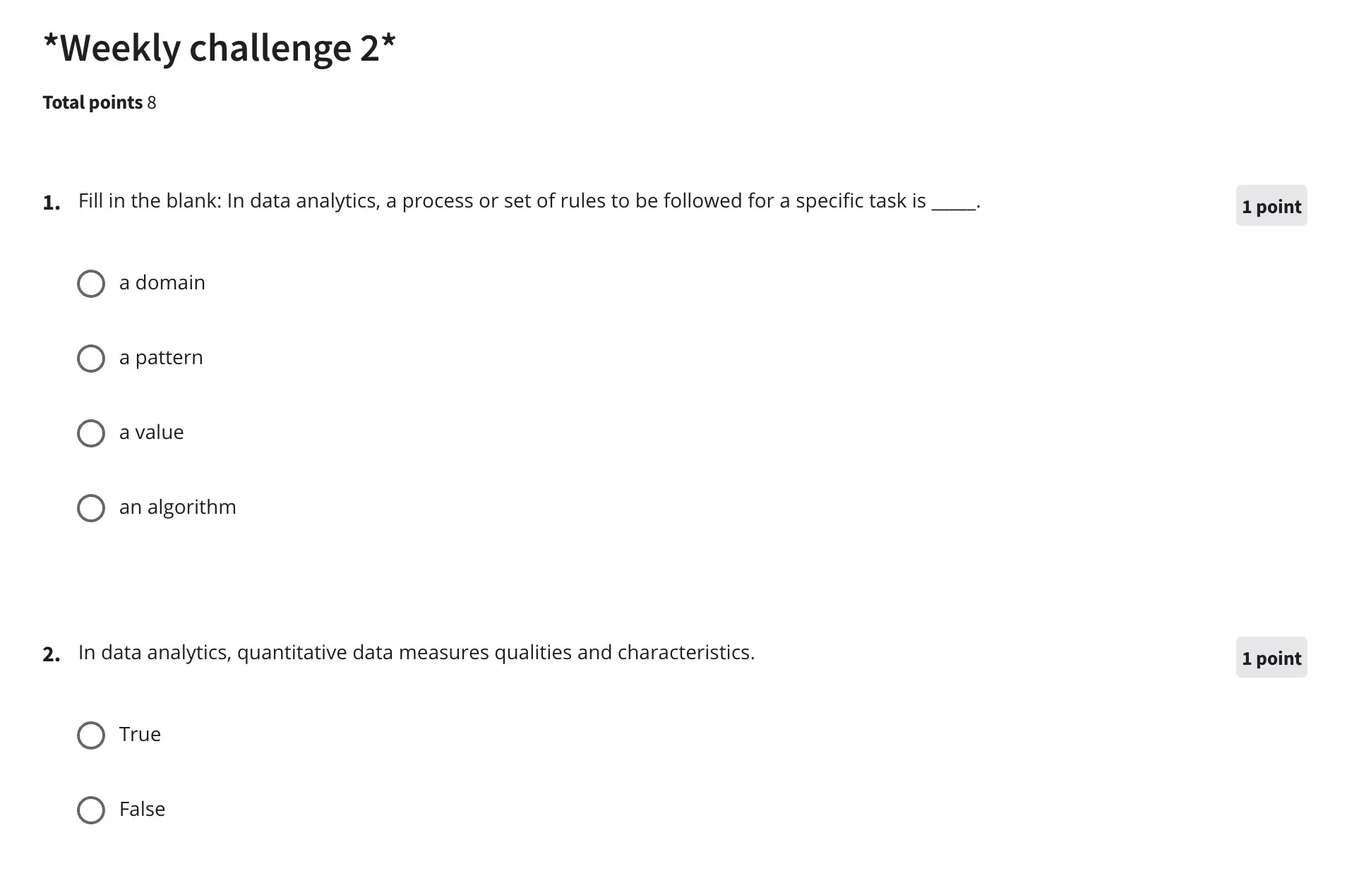 To achieve the Google Data Analytics Professional Certificate you need to finish the eight courses including all marked assessments.