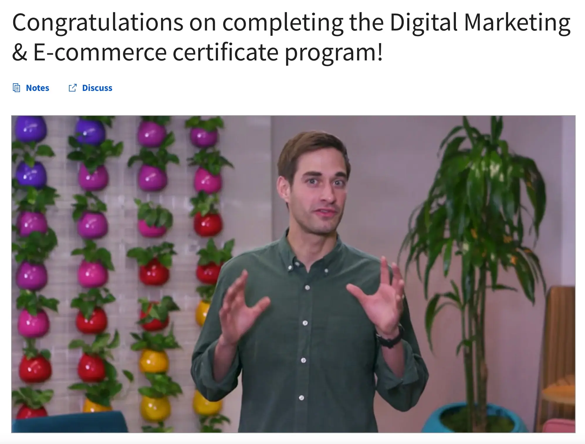 While the rest of the courses were focused on the digital marketing aspect, this is the first course to talk about eCommerce. To clear any misconceptions, by completing this course you'll not be awarded a Google eCommerce Certificate but a course completion certificate. To get the Google Digital Marketing & eCommerce professional certificate, you need to complete ALL seven courses. There is no Google eCommerce Certificate.