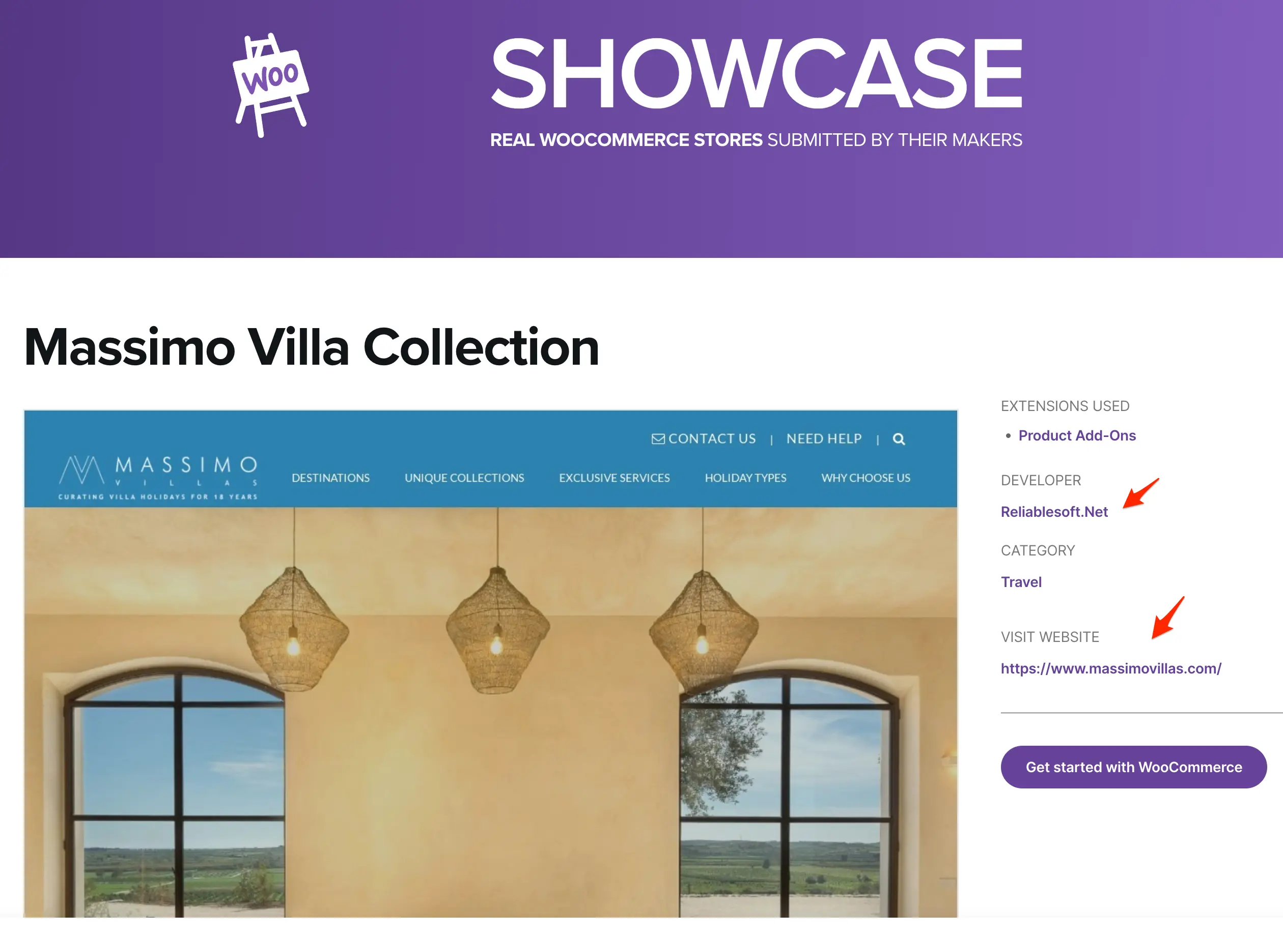 Here is an example of a link we acquired from Woocommerce showcasing a website we developed.