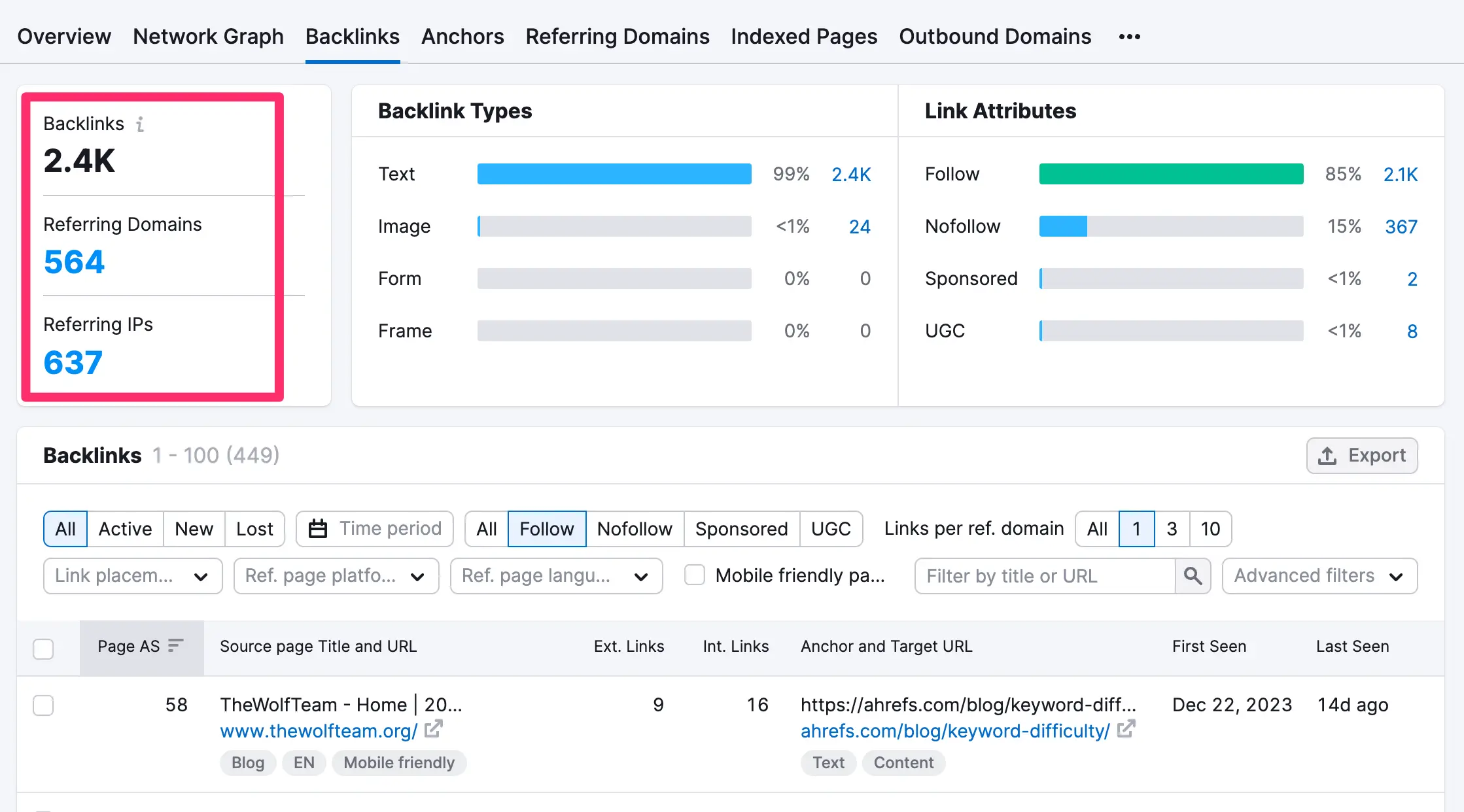 3. Links from different domains: Having more than one link from the same domain is not helpful. It's better to have backlinks from various websites rather than many links from the same site. This shows Google that your content is widely recognized and valued. When doing your analysis, use the number of unique domains as your main metric, not the total number of links.