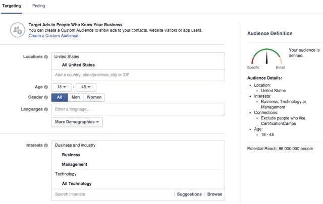 To do that, you use targeting, a feature that will narrow down your audience so that you don’t waste your budget on people that will never be interested in your offerings.