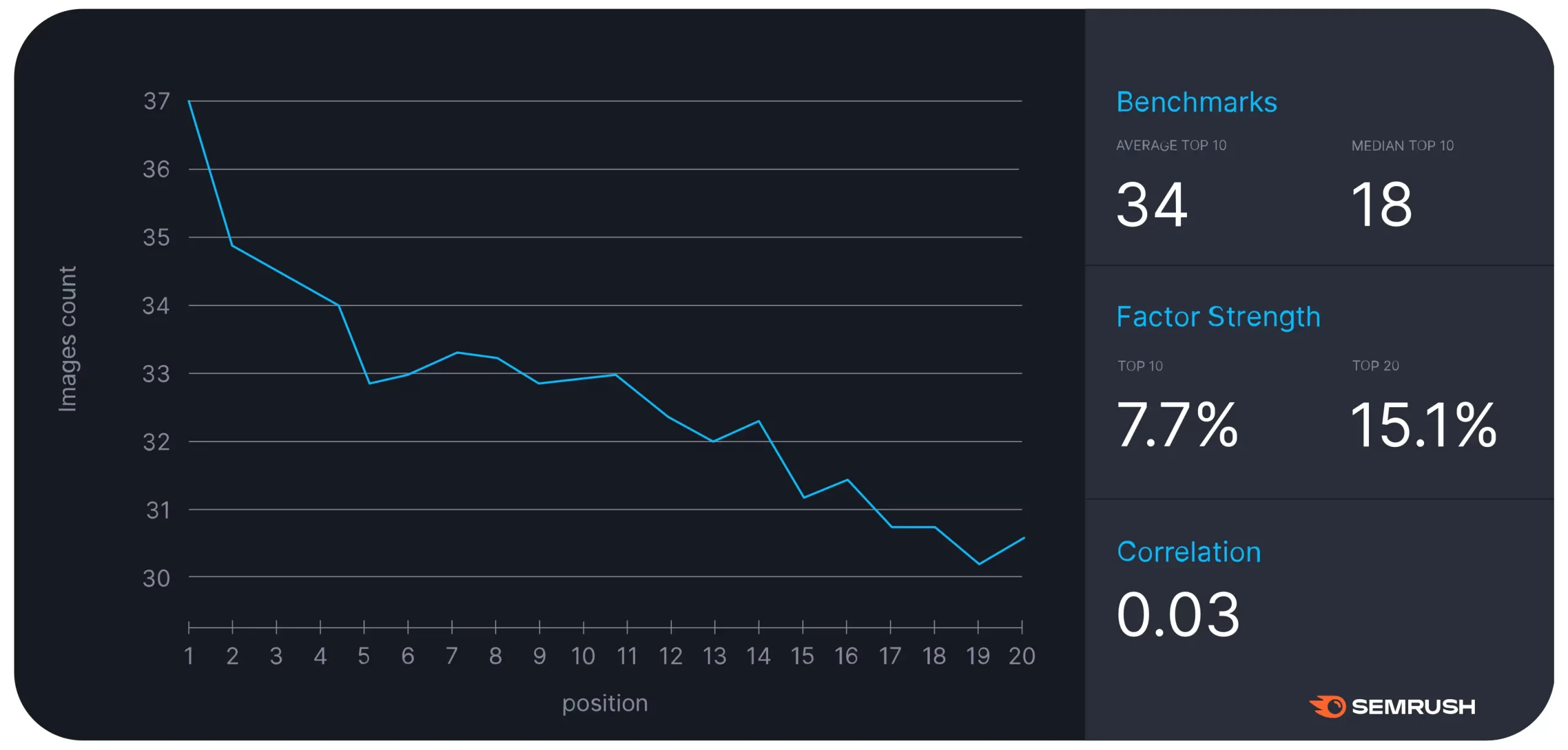 According to recent studies, the top 10 pages on Google have, on average, 34 images.