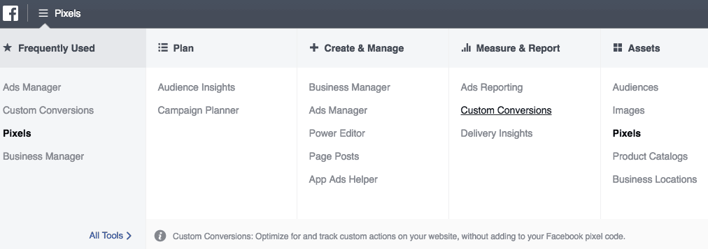 Facebook Business Manager is also where you will create and manage your Facebook Pixels. These pixels are pieces of tracking code that are added to your website.