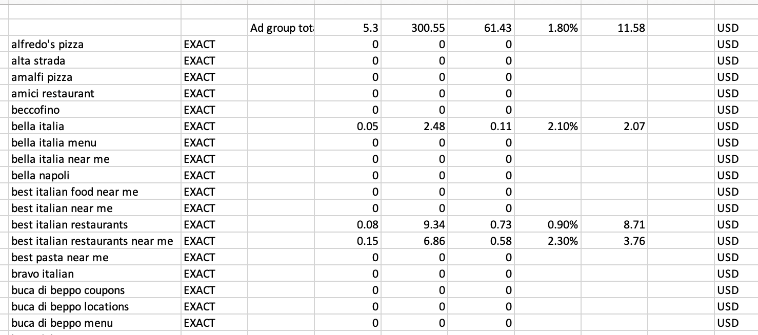 Next, you can add some filters to EXCLUDE brand-related keywords and search terms that are not relevant.