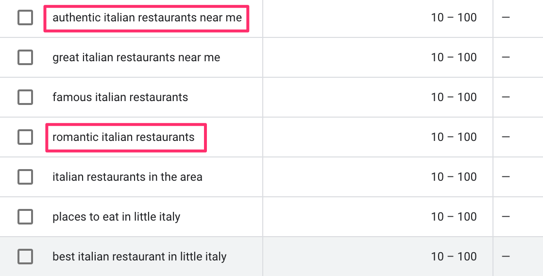 Let’s say you want to find out what people search for related to “Italian restaurants” in a particular city.